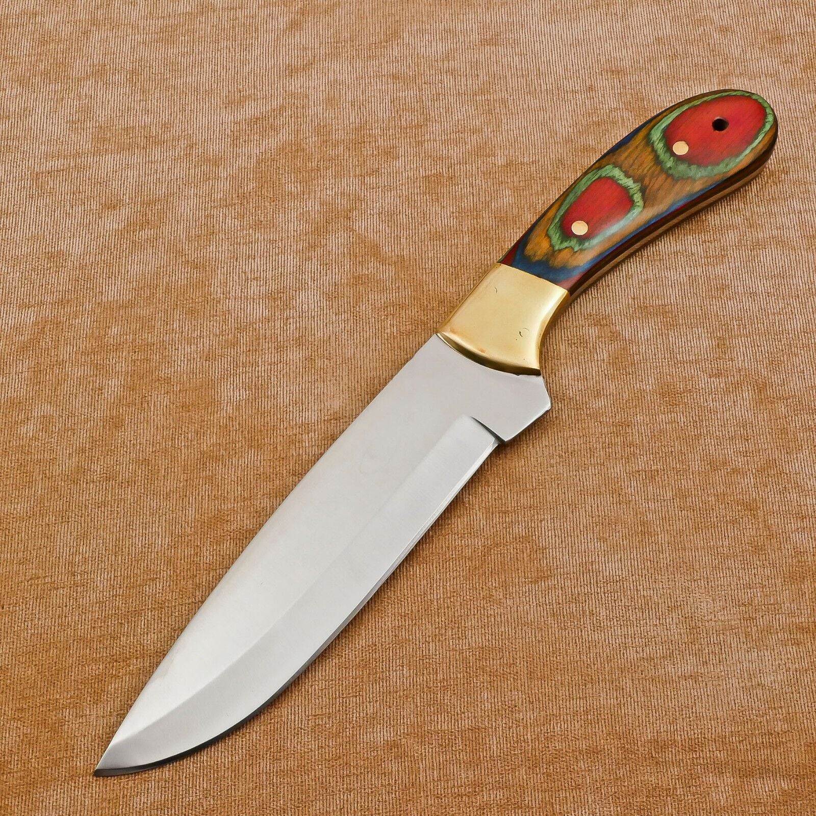 Step into the wild fully prepared with this Handmade 12 Inch D2 Steel Full Tang Bowie Hunting Knife featuring a stylish brass bolster. Crafted from premium D2 tool steel, the blade delivers exceptional hardness, razor-sharp precision, and long-lasting edge retention, making it ideal for hunting, camping, survival, and other demanding outdoor activities. The 12-inch overall length ensures a perfect balance of power and control, allowing you to chop, slice, and field dress game or perform tough camping tasks with ease.The full tang construction provides maximum strength, stability, and durability, ensuring this knife remains reliable under the harshest conditions. The ergonomically designed handle offers a secure and comfortable grip, while the brass bolster adds both elegance and reinforcement, making the knife visually striking and functional. Each knife is meticulously handmade, showcasing skilled craftsmanship and making each piece unique.