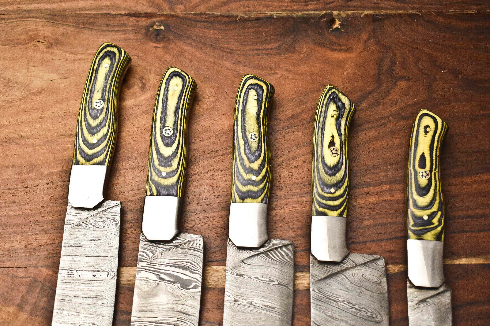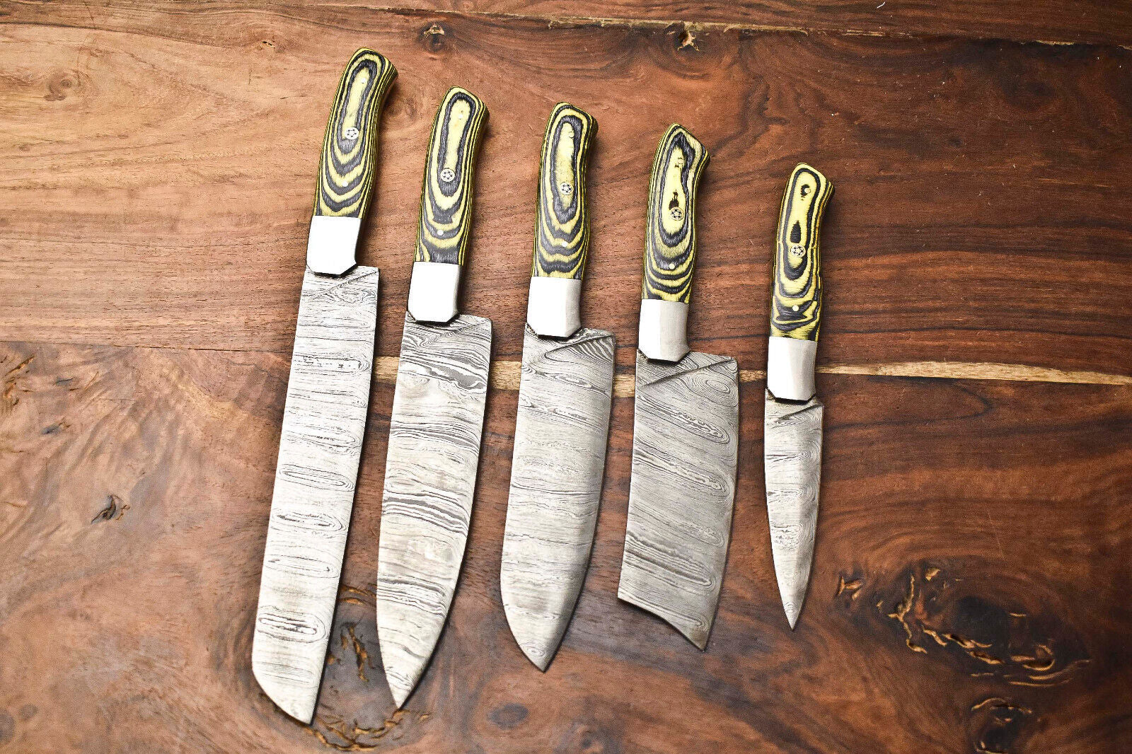 Handmade 5-Piece Damascus Steel Chef Knife Set – Hammered Professional Kitchen Knives