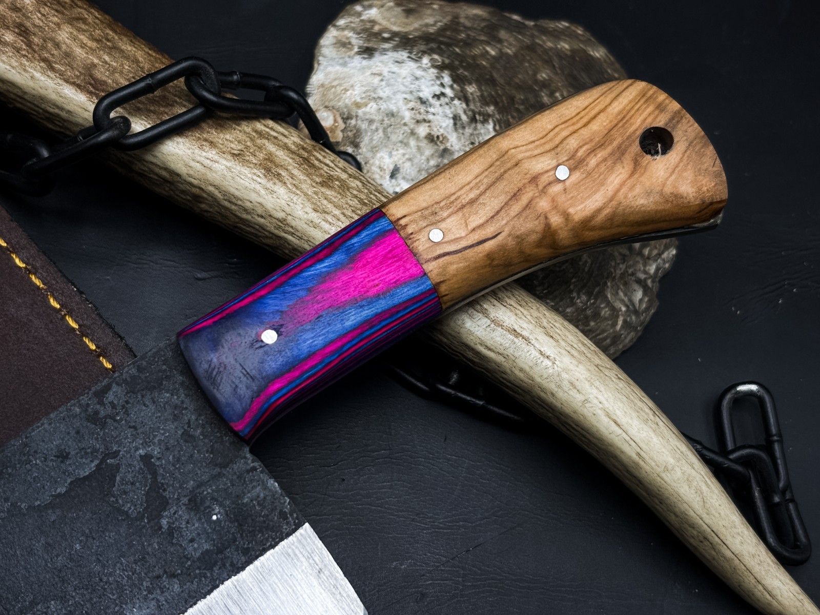 This Handmade Carbon Steel Kitchen Chef Cleaver Knife is crafted with precision and durability, making it a versatile tool for both kitchen and outdoor use. Featuring a robust 3.5 to 4-inch gray carbon steel blade, this cleaver is designed for chopping, slicing, and cutting with ease. The resin handle ensures a comfortable, non-slip grip, while the full tang construction provides strength and balance for long-term use. Complete with a cow leather sheath, this knife offers safe storage and easy transport, making it ideal for chefs, home cooks, and outdoor enthusiasts alike. Whether used for cooking, camping, or everyday carry, this cleaver combines practicality with timeless craftsmanship.