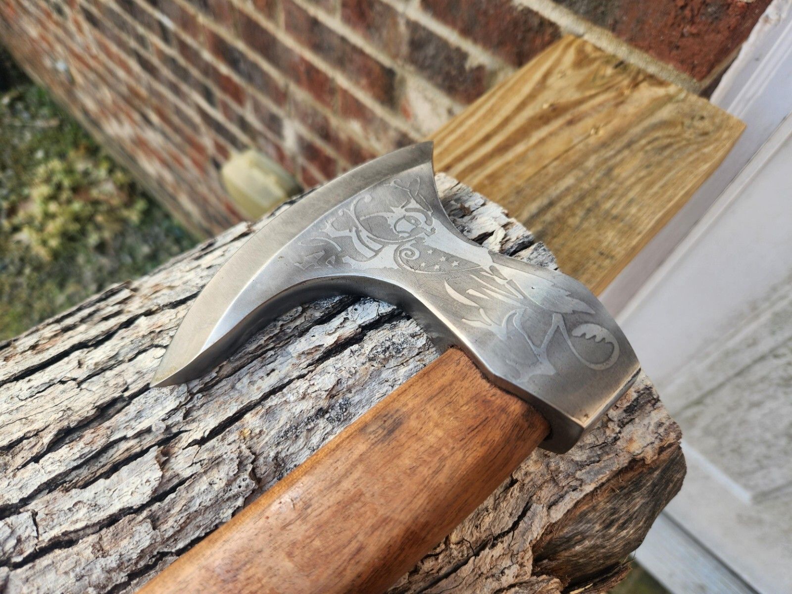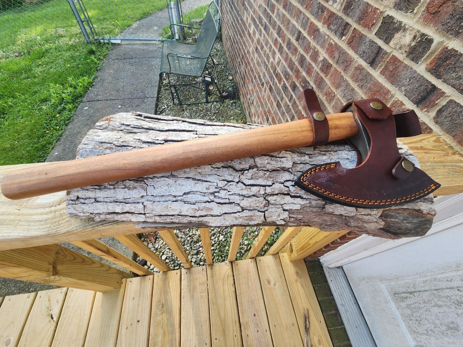 Handmade Carbon Steel Viking Axe with Wooden Handle and Leather Sheath