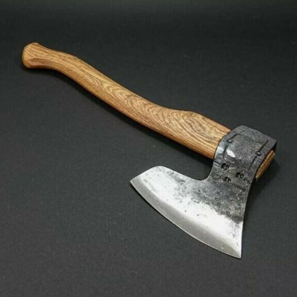 This hand forged carbon steel Viking hatchet axe is a striking blend of durability, artistry, and traditional craftsmanship. Featuring a razor-sharp bearded blade, this axe is perfect for camping, hunting, bushcraft, and outdoor adventures, while also serving as a collectible display piece.