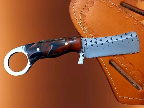 The Handmade cowboy custom bull cutter knife with hoof rasp steel and resin handle is a compact yet powerful blade crafted for ranchers, hunters, and outdoor enthusiasts. Built in traditional cowboy bull cutter knife style, this knife offers durability, strength, and precision cutting performance. This full tang custom bull cutter knife is forged from authentic hoof rasp steel, ensuring toughness and long lasting sharpness. Measuring 5.5 inches overall, it is ideal for those looking for reliable bull cutter knives that are compact and easy to carry. Complete with a durable leather bull cutter knife with sheath, this blade is ready for everyday use. Whether you need a dependable bull cutter for ranch tasks or strong calf cutter knives for livestock work, this knife stands among the best bull cutter knife options available.