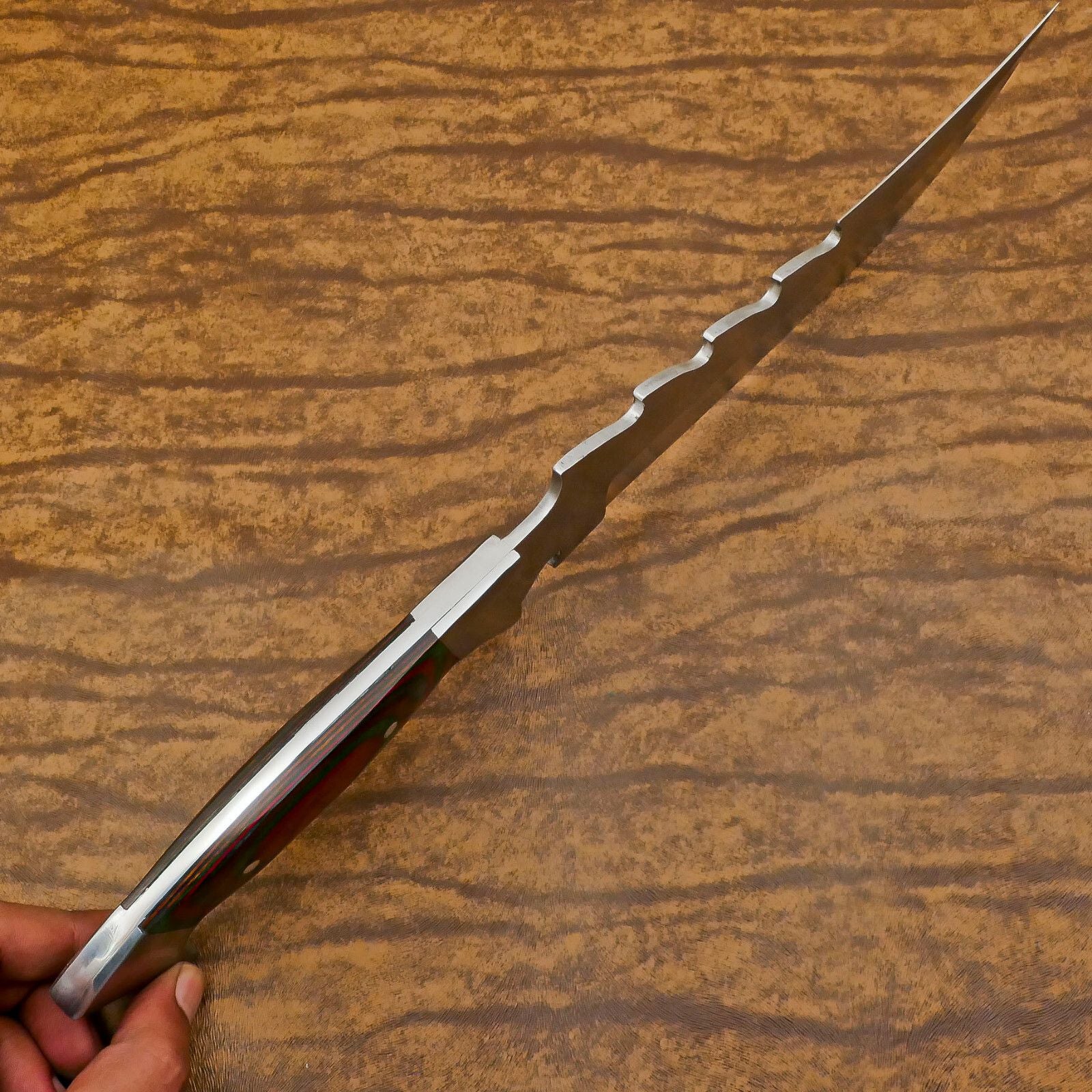 Handmade D2 Clip Point Bowie EDC Hunting Knife – 12" Full Tang with Pakka Wood Handle