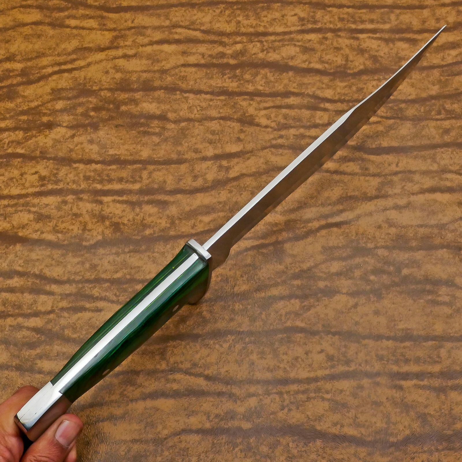Handmade D2 Clip Point Bowie EDC Hunting Knife – 12" Pakka Wood Handle