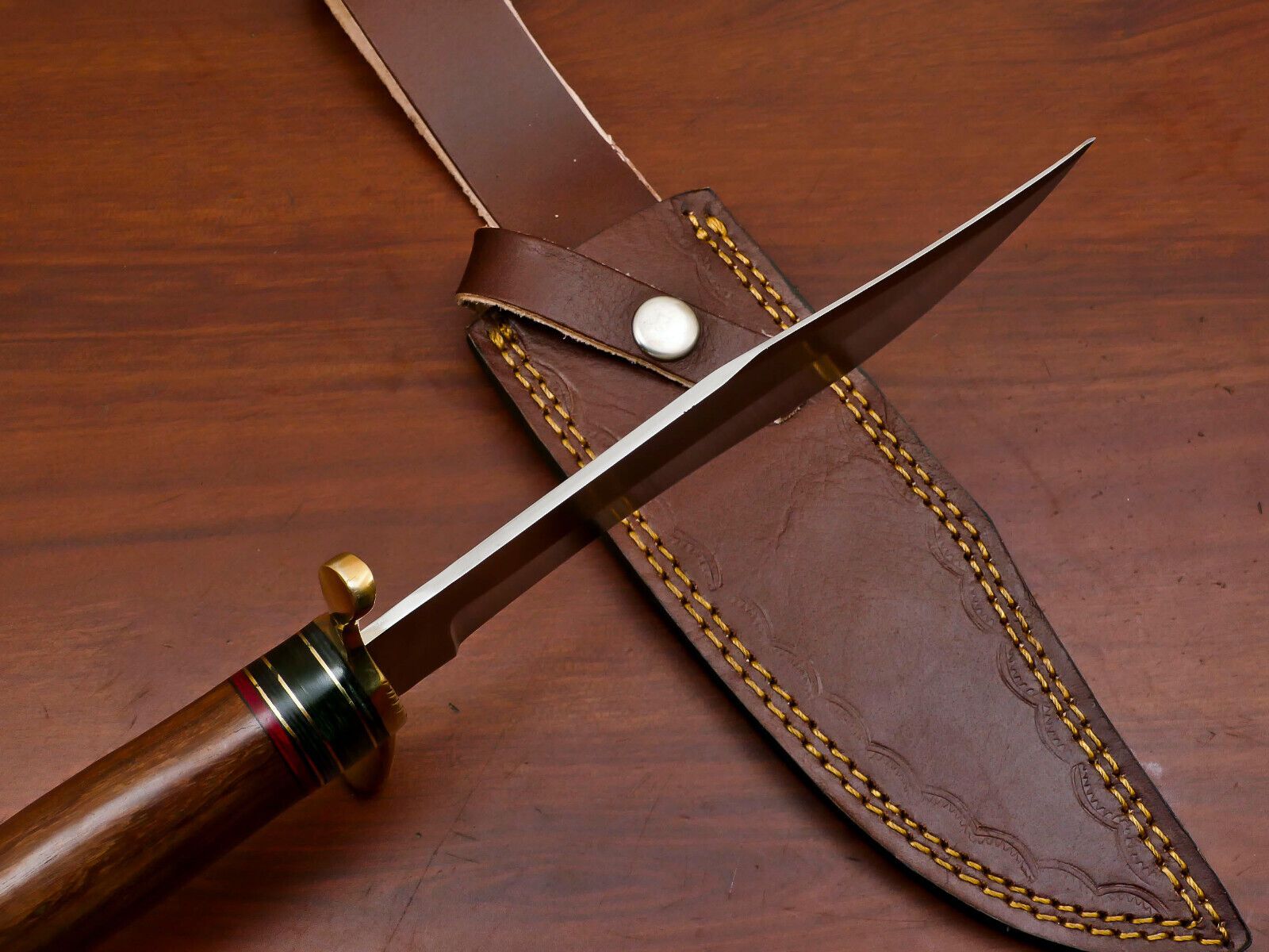 Upgrade your outdoor gear with this Handmade D2 Clip Point Bowie Hunting Knife, featuring a 12-inch full tang fixed blade crafted from premium D2 tool steel. Known for its exceptional hardness, edge retention, and durability, this knife is designed to perform under the toughest conditions. The clip point blade offers enhanced piercing capability and precise cutting control, making it ideal for hunting, camping, survival, and tactical tasks.Built with full tang construction, this Bowie knife ensures superior balance, strength, and control, while the ergonomic handle provides a secure and comfortable grip. Its design makes it perfect for chopping, slicing, and field dressing, while the robust D2 steel blade maintains sharpness and reliability for extended use.