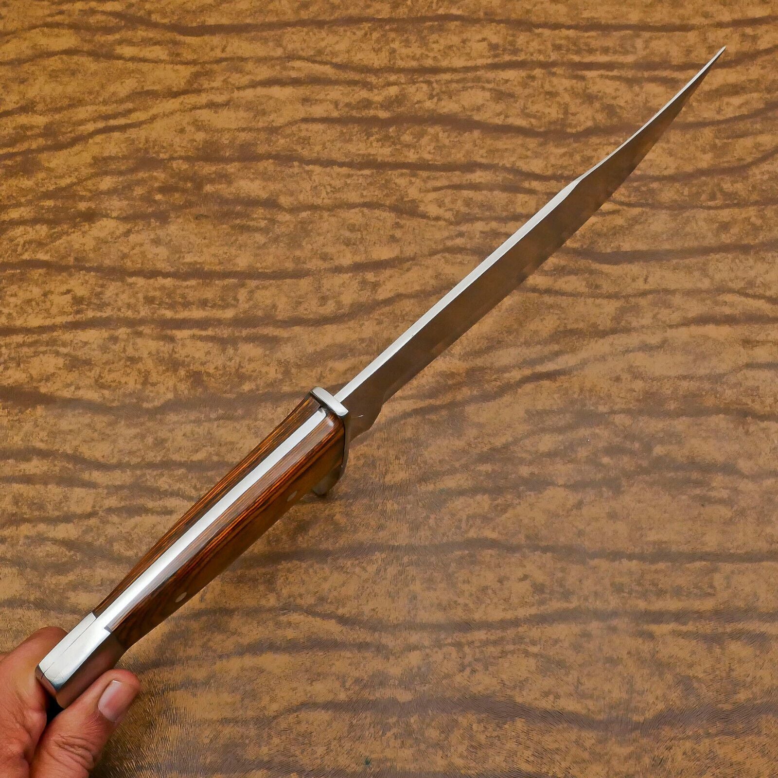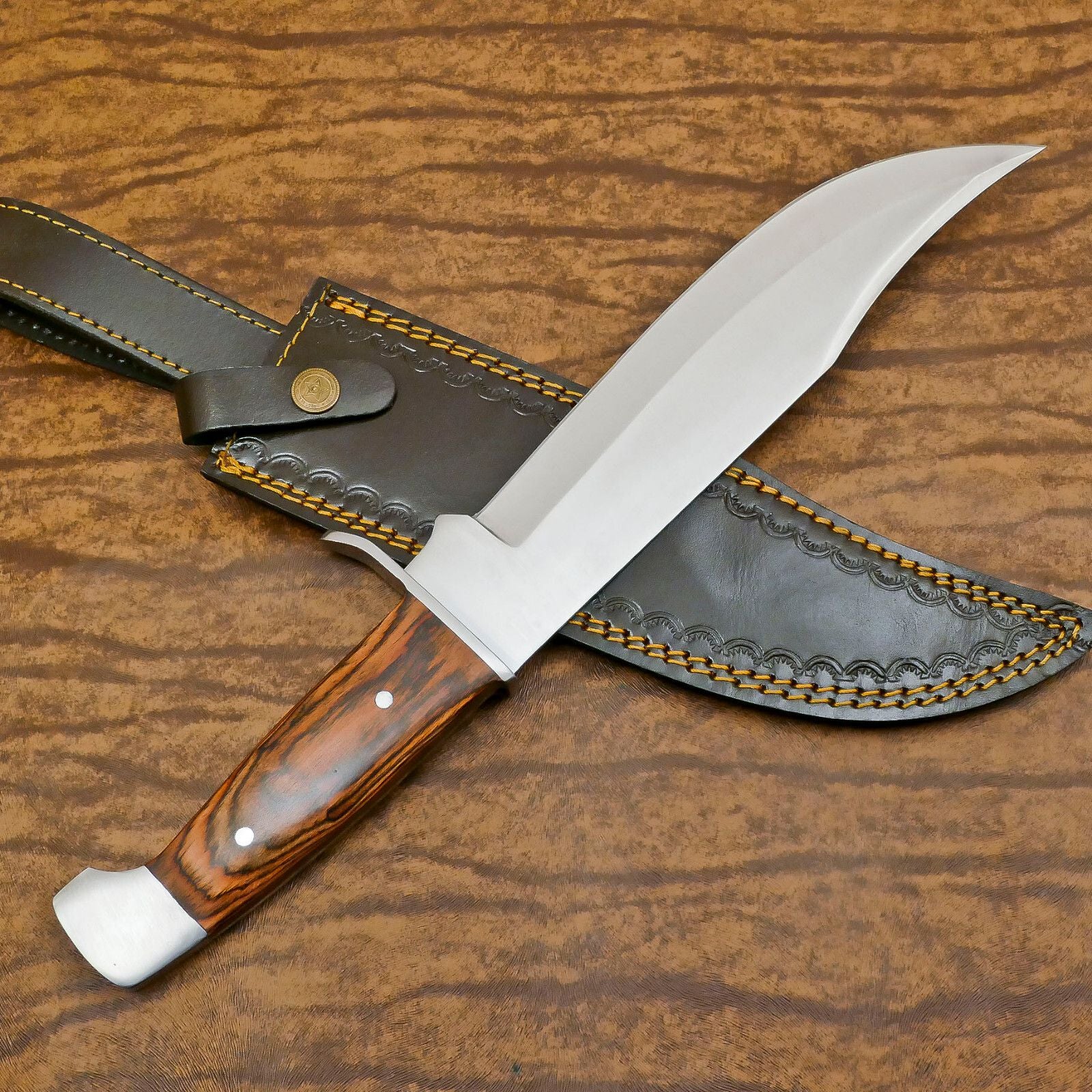 Discover the perfect balance of elegance, strength, and practicality with this handmade D2 clip point Bowie EDC hunting knife. Expertly crafted for hunters, outdoor enthusiasts, and collectors, this 12-inch knife is forged from premium D2 tool steel, known for its razor-sharp edge retention and long-lasting durability. The clip point blade design enhances precision, making it ideal for controlled cutting, hunting, skinning, and everyday carry (EDC) tasks.Built with a full tang construction, this knife ensures superior stability and strength for demanding outdoor use. The handle is made from high-quality Pakka wood, providing not only a comfortable and secure grip but also a touch of natural beauty that complements the rugged steel blade. Its ergonomic design allows for safe handling during extended use, whether in survival situations, camping, or routine outdoor chores.