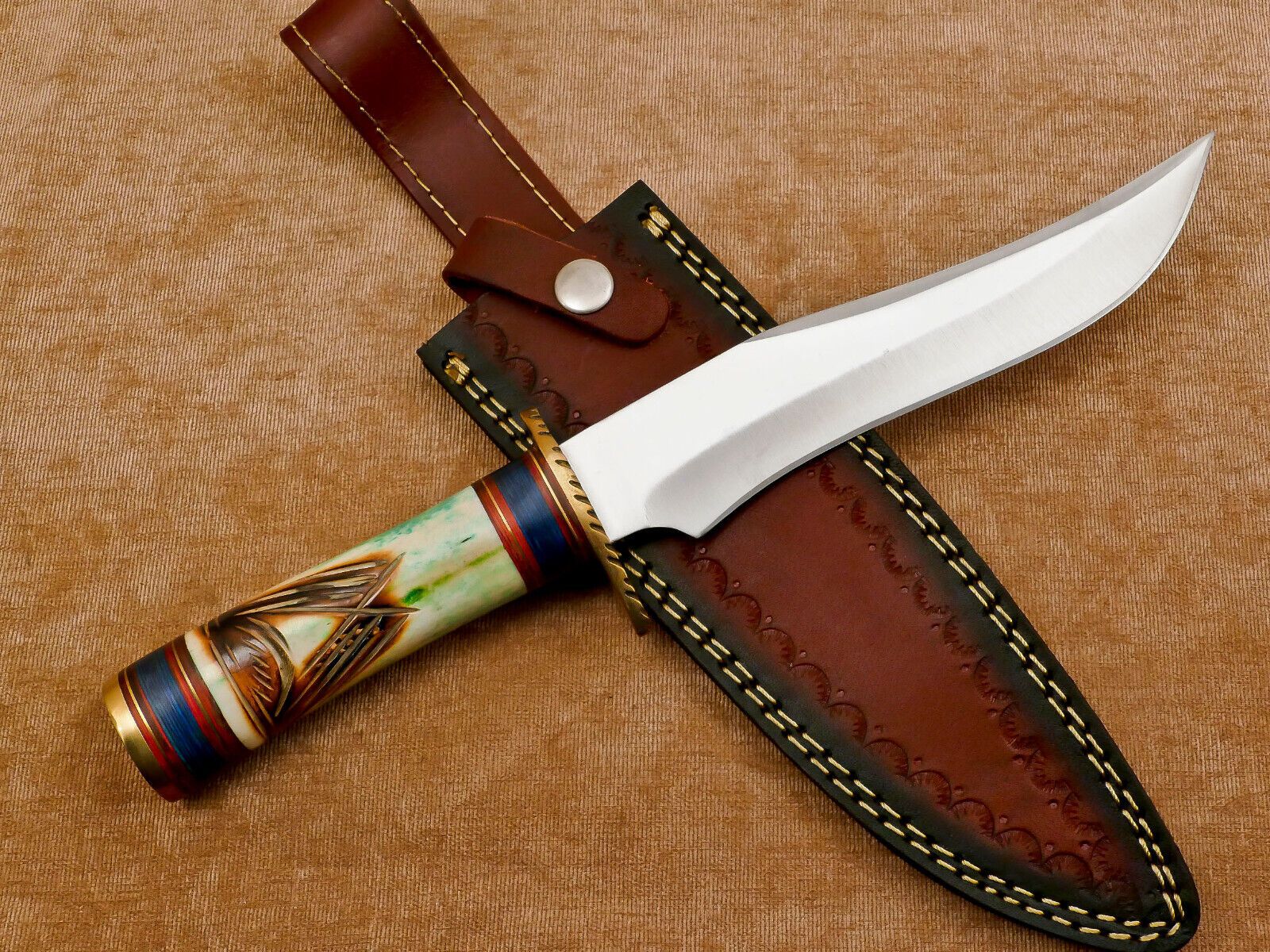 Equip yourself for the outdoors with our Handmade D2 Clip Point Fixed Blade Bowie Knife, measuring 12 inches in total length for ultimate versatility. Crafted from premium D2 steel, this knife offers exceptional hardness, long-lasting sharpness, and corrosion resistance, making it perfect for hunting, camping, and survival scenarios. The clip point design allows for precise cutting and controlled slicing, ideal for detailed fieldwork and general outdoor tasks. Featuring a full tang construction, this knife provides unmatched strength, balance, and reliability, ensuring you can tackle heavy-duty tasks like chopping, slicing, or game preparation with confidence. The ergonomic handle delivers a secure and comfortable grip, even during extended use in rugged conditions. Each blade is meticulously handcrafted, making every knife unique and showcasing exceptional artisan craftsmanship. The included durable sheath allows for safe storage and easy portability, making it a dependable companion on hunting trips, camping adventures, or survival expeditions. Combining style, durability, and performance, this 12-inch D2 steel clip point bowie knife is both a practical tool and a collector’s piece, offering strength, precision, and reliability for all your outdoor needs.