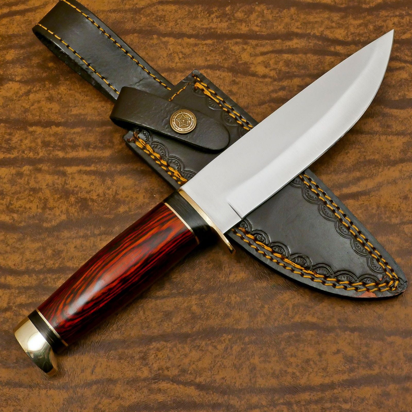 Handmade D2 Steel Bowie Knife | Camping & Hunting Full Tang with Pakka Wood Handle 12"