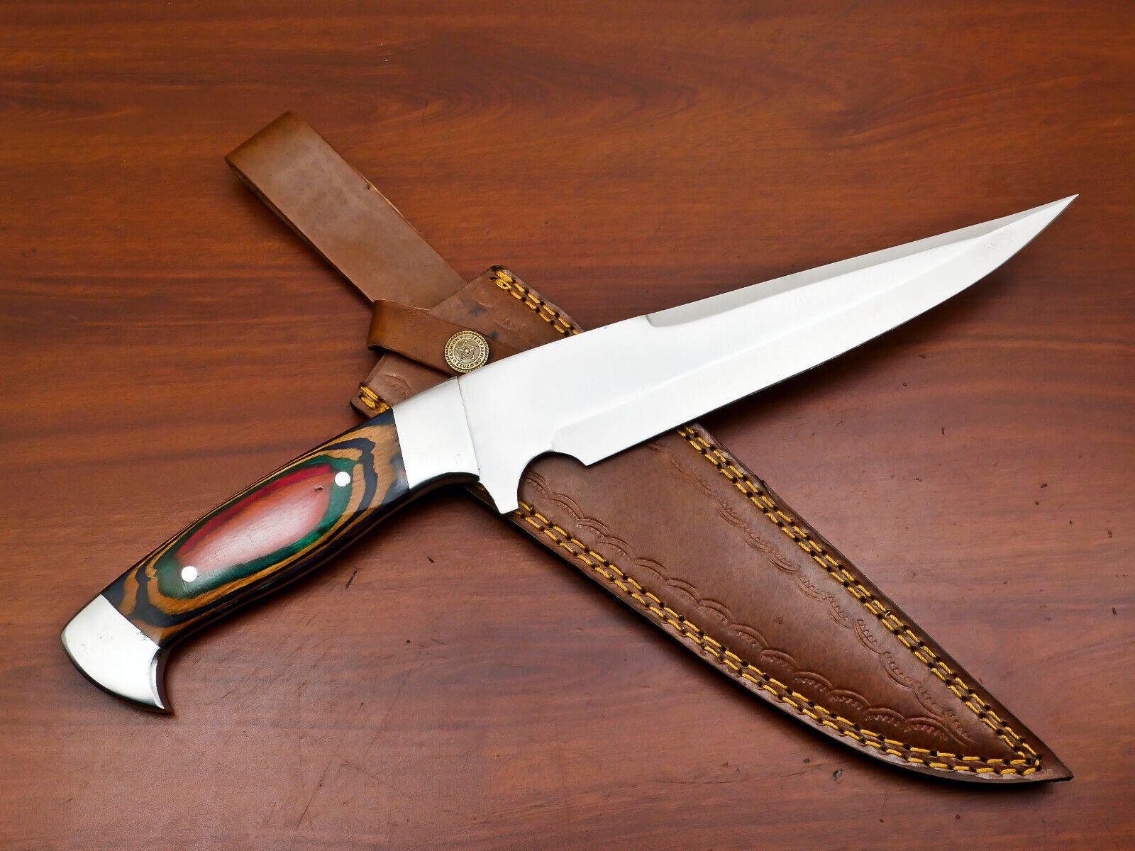 Handmade D2 Steel Bowie Knife – Full Tang Hunting Blade with Steel Guard