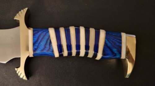 Showcasing both craftsmanship and performance, this Handmade D2 Steel Decorative Display Hunting Bowie Knife is designed for collectors and outdoor enthusiasts alike. Measuring 15 inches overall, it features a 10-inch blade forged from premium D2 tool steel, a high-carbon, high-chromium material known for its outstanding hardness, wear resistance, and toughness. With a Rockwell hardness rating of 58–60HRC and a 4.0MM thick spine, this blade is professionally sharpened at a 25-degree angle to ensure a razor-sharp, long-lasting edge. While fully functional and battle-ready, this knife also serves as a striking decorative piece due to its handcrafted details. The handle is carefully constructed from a blend of camel bone and wood, secured with a strong steel handguard and end cap, creating both durability and visual appeal. Each knife is handmade, ensuring unique variations that add to its charm and collectible value. A custom handmade leather sheath is included for safe storage and stylish display. Whether used for hunting, survival, or proudly showcased as part of your collection, this Bowie knife combines utility, beauty, and strength. Add this versatile piece to your gear or display cabinet and experience the perfect balance of tradition, craftsmanship, and functionality.