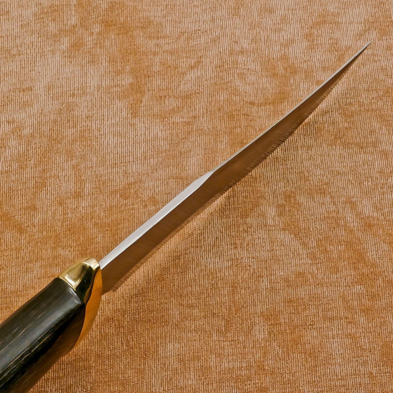Experience the strength and precision of our handmade D2 steel fixed blade Bowie hunting and camping knife. This full tang 12-inch knife is crafted from high-grade D2 tool steel, renowned for its superior edge retention and hardness, making it a reliable partner in even the most demanding outdoor conditions. Designed with a razor-sharp edge and balanced construction, this Bowie knife is equally suited for hunting, camping, and survival tasks. The robust fixed blade provides excellent cutting power, while the ergonomic handle ensures a comfortable and secure grip for long hours of use. A solid steel guard offers added safety and control during heavy-duty tasks, whether you are preparing campfire wood, skinning game, or tackling rugged outdoor challenges. Hand-forged to perfection, this knife embodies craftsmanship, durability, and functionality, making it a practical tool as well as a collector’s piece. Ideal for outdoor adventurers, hunters, or survivalists, it also serves as a great gift for knife enthusiasts who value handmade quality. With its blend of power, reliability, and striking design, this D2 steel Bowie hunting knife is a must-have addition to your outdoor gear collection.