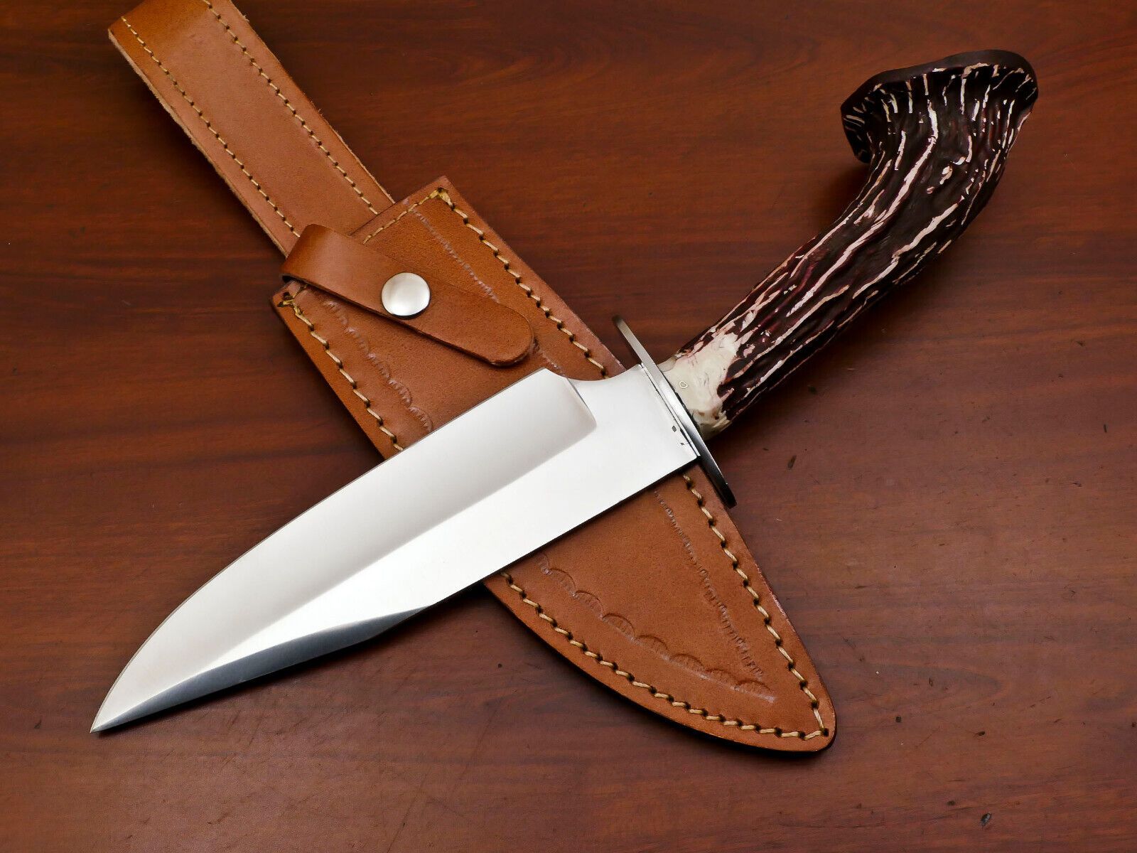 Handmade D2 Steel Fixed Blade Bowie Hunting Knife with Stag Handle