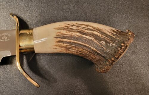 The Handmade D2 Steel Hunting Bowie Knife with Stag Crown Handle is a masterpiece of craftsmanship designed for both functionality and timeless appeal. Forged from high-quality D2 tool steel, this knife offers superior hardness, wear resistance, and remarkable edge retention, making it a dependable choice for hunting, camping, survival, or as a collector’s centerpiece. With an overall length of approximately 12 inches, it features a razor-sharp blade that has been professionally ground to withstand heavy-duty outdoor use while maintaining precision cutting ability.What makes this knife truly unique is its stag crown handle, chosen for its natural strength, durability, and striking aesthetic. Each handle is one-of-a-kind, with rich textures and organic patterns that highlight its handmade authenticity. The full tang construction ensures balance and reliability, while the polished guard and pommel provide both safety and a classic design touch.