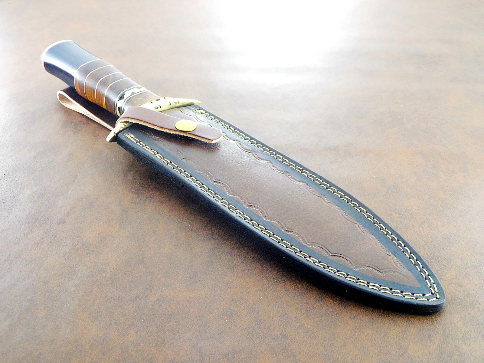 Handmade Damascus 12.75 Inch Double Edge Dagger Bowie Knife Leather Sheath