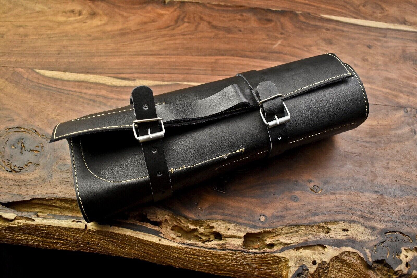 Each knife comes with a custom handmade leather sheath crafted from genuine top-quality calf skin. The sheath is perfectly fitted, fully tooled, and hand-stitched. Designed to be worn on a belt.