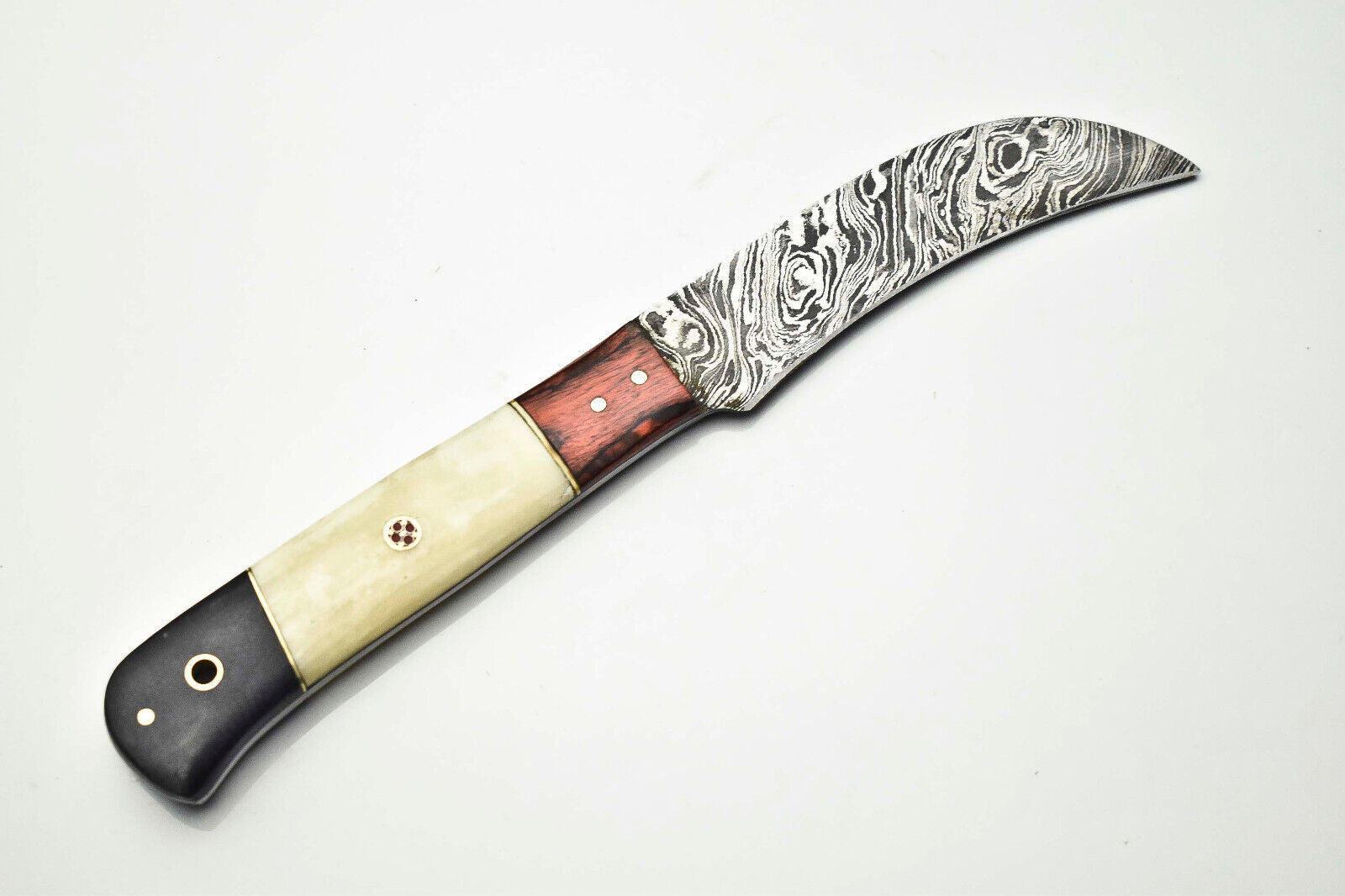 The Cutlery Salvation Handmade Damascus Blade Kitchen Full Tang Chef Knife features an overall length of 11.0 inches and is expertly oil tempered to a hardness of 58-60 HRC. The blade edges are sharpened precisely at 20 degrees for superior cutting performance. The knife you see in the photos is exactly what you will receive. Our Damascus steel is authentic, crafted from a mixture of 1095HC and 15N20 nickel carbon steel. The steel bars are heated and folded repeatedly to create an impressive 384 layers, resulting in a beautifully patterned blade. After forging, the blade is burned in acid, turning the nickel layers to a satin finish and the high carbon layers to a blackish gray, which vividly reveals the distinct Damascus pattern. This acid etching process highlights the layers, making the knife both functional and visually stunning. The handle is carefully high polished to remove the acid burn for a smooth satin finish, while the blade edge retains its sharpness and satin appearance. Each knife is meticulously handmade with no CNC machining, ensuring you receive a unique, high-quality kitchen tool.