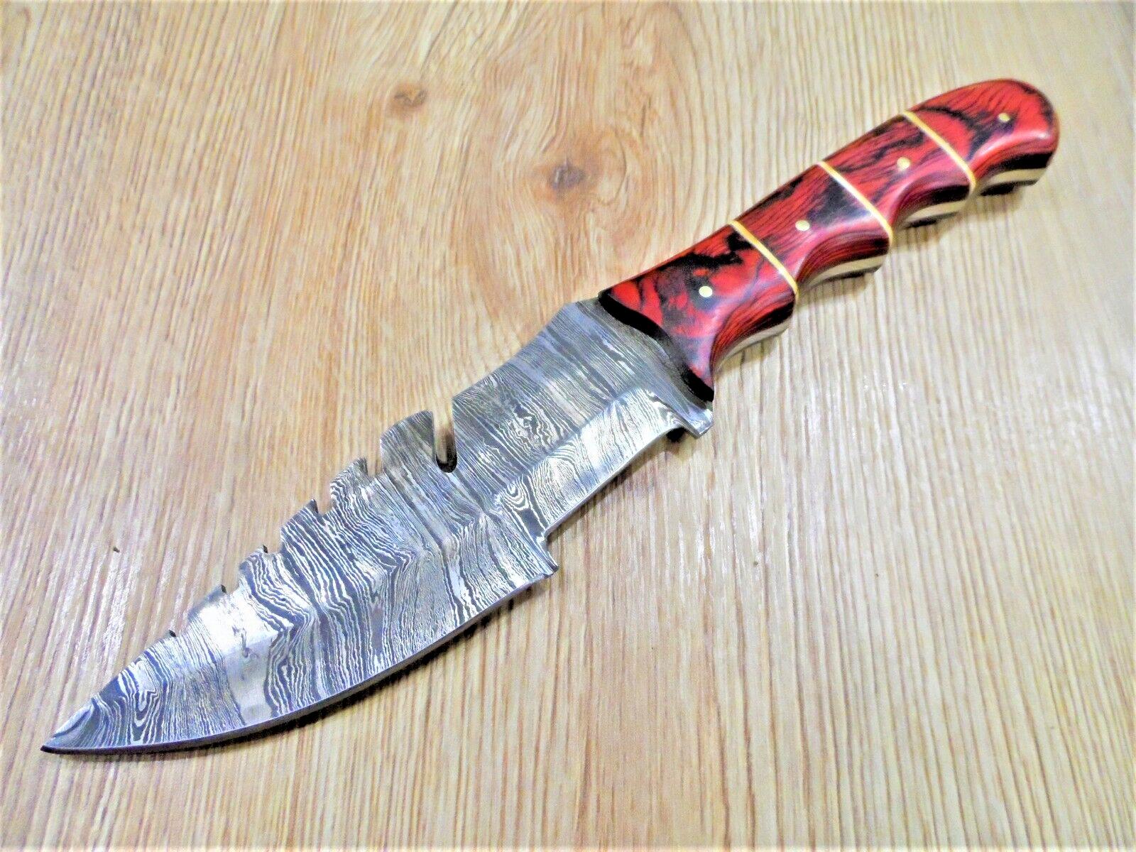 Handmade Damascus Bowie Knife | 10" Camping & Hunting Fixed Blade with Pakka Wood Handle