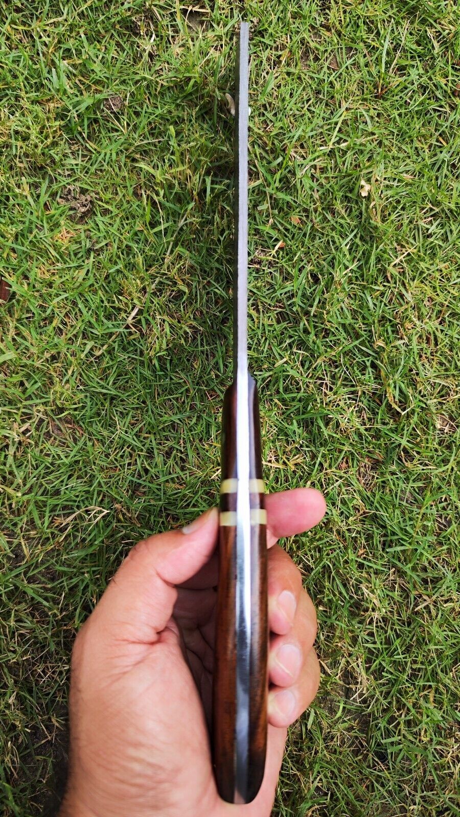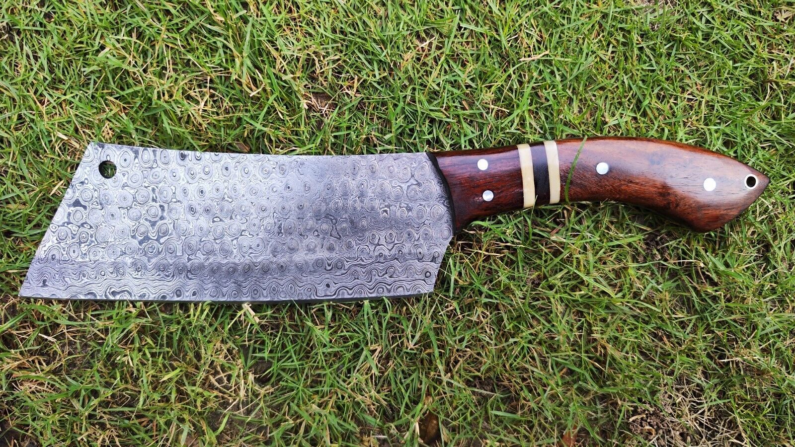 Experience the perfect balance of beauty, power, and precision with this Handmade Damascus Cleaver Knife, crafted to meet the demands of both professional chefs and passionate home cooks. Featuring a razor-sharp 9-inch blade made from 512 layers of premium Damascus steel, this Serbian-style butcher knife delivers exceptional cutting performance and long-lasting durability. The stunning Damascus pattern showcases expert craftsmanship, while the ergonomic resin wood handle ensures a comfortable, secure grip for effortless control during chopping, slicing, dicing, and smashing. With a hardness rating of 58–60 HRC, the blade retains its sharp edge even after heavy use, making it an essential tool for your kitchen. Every knife comes complete with a premium leather sheath for safe storage and portability. Combining unmatched functionality with artistic design, this cleaver is not just a cooking instrument — it’s a work of art you’ll be proud to own and use for years to come.