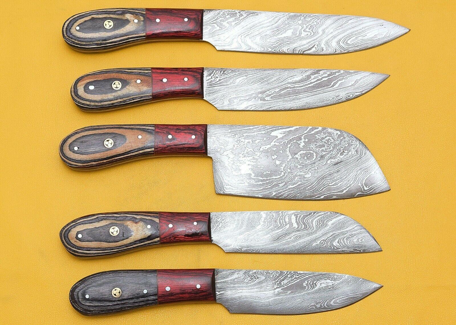 Handmade Damascus Kitchen Chef Knife Set with Pakka Wood Handle