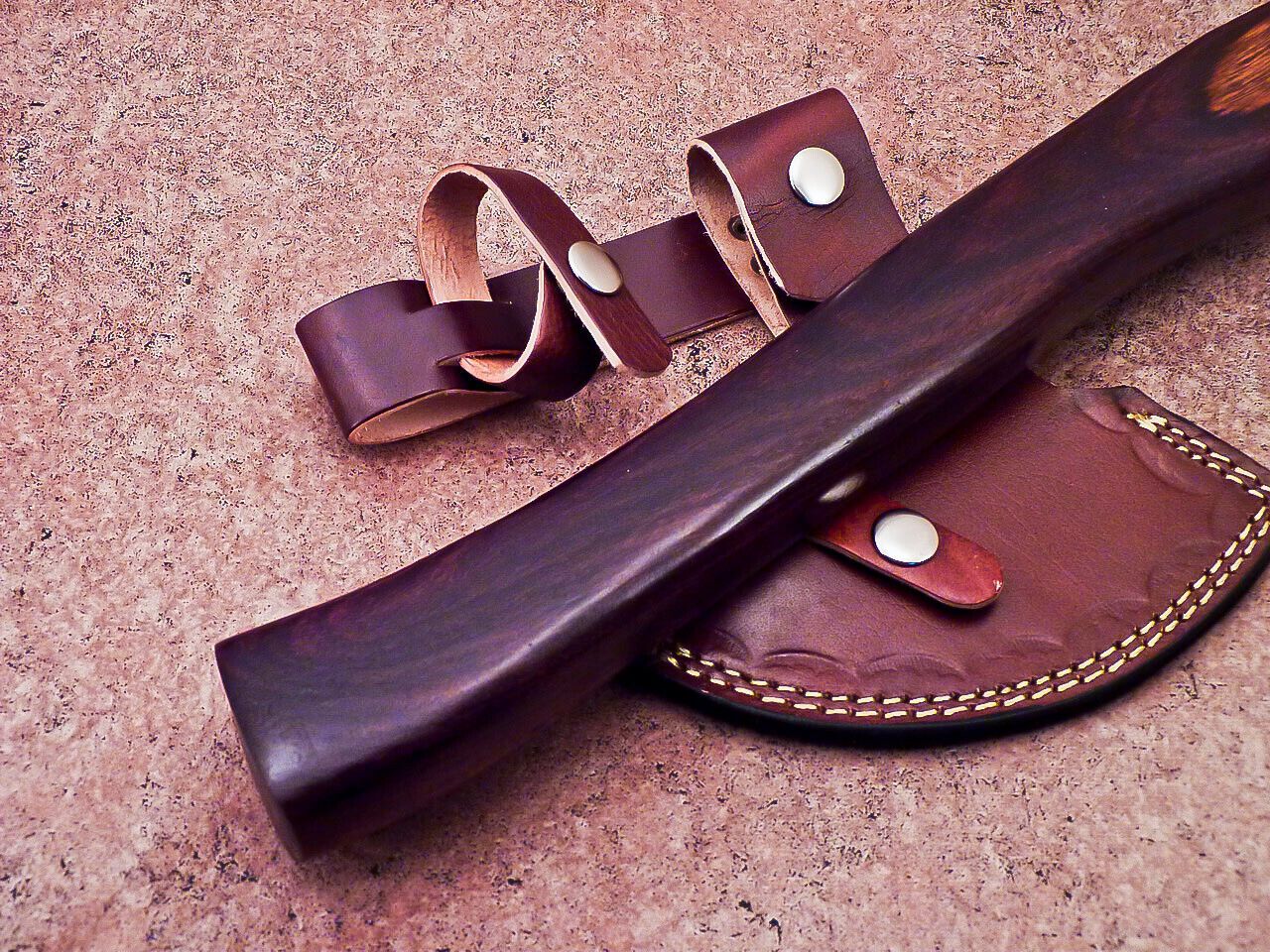 Discover the perfect blend of craftsmanship and functionality with this handmade Damascus steel axe, a limited edition masterpiece designed for collectors and outdoor enthusiasts alike. The blade is meticulously hand-forged from 1095 and 15N20 high-carbon steel, forming 512 true layers that create a mesmerizing flowing pattern visible from spine to cutting edge. This hand-forged Damascus axe features a microscopic saw-blade effect that ensures long-lasting sharpness, making it ideal for wood chopping, camping, hunting, or bushcraft activities.