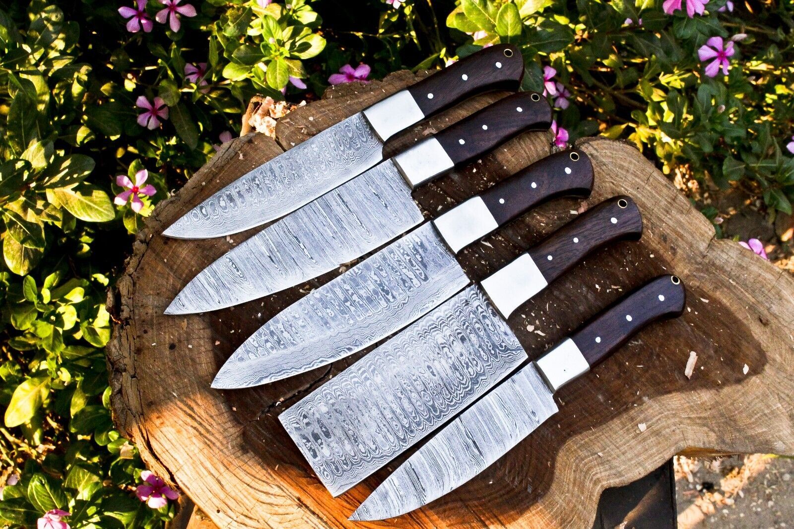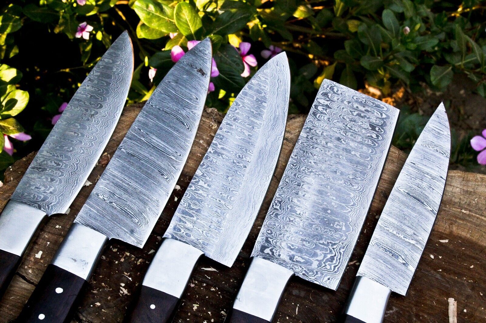 Upgrade your culinary experience with this custom handmade Damascus Steel Chef Knife Set, designed for BBQ, kitchen, and professional chef use. Each knife in this set is hand forged using real Damascus steel—a blend of 1095 high carbon and 15N20 nickel steel, folded into 384 layers for unmatched strength, edge retention, and a striking pattern.
