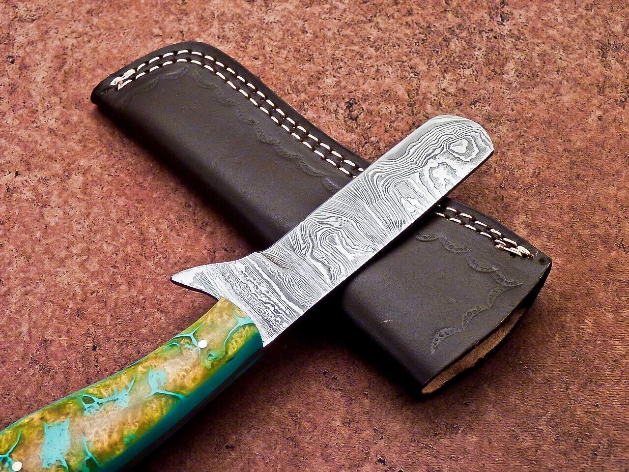Handmade Damascus Steel Bull Cutter Knife Custom Cowboy Bull Cutter Knife with Resin Handle