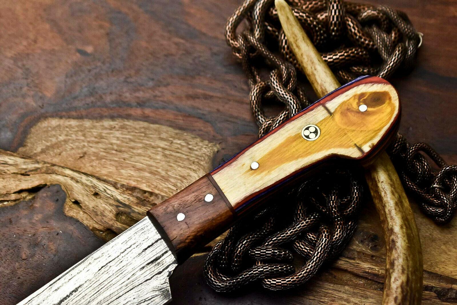 Handmade Damascus Steel Chef Knife – Full Tang Kitchen Blade with Hardwood Handle