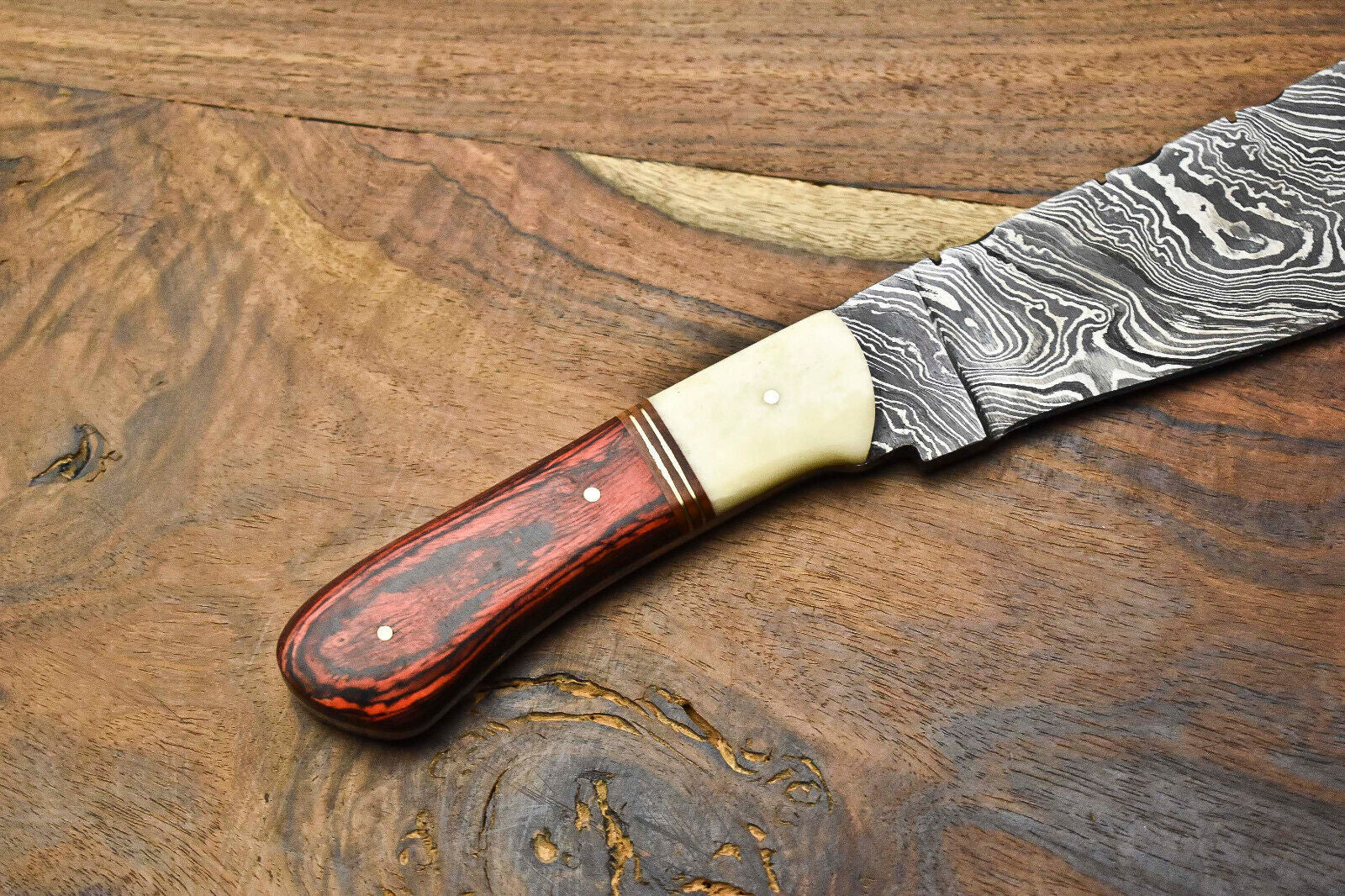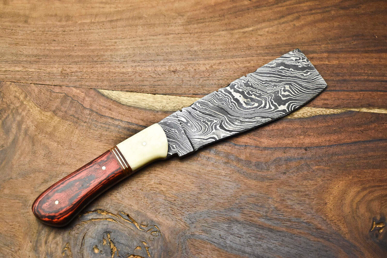 "Handmade Damascus Steel Chef Knife – Full Tang Kitchen & Outdoor Utility Blade"