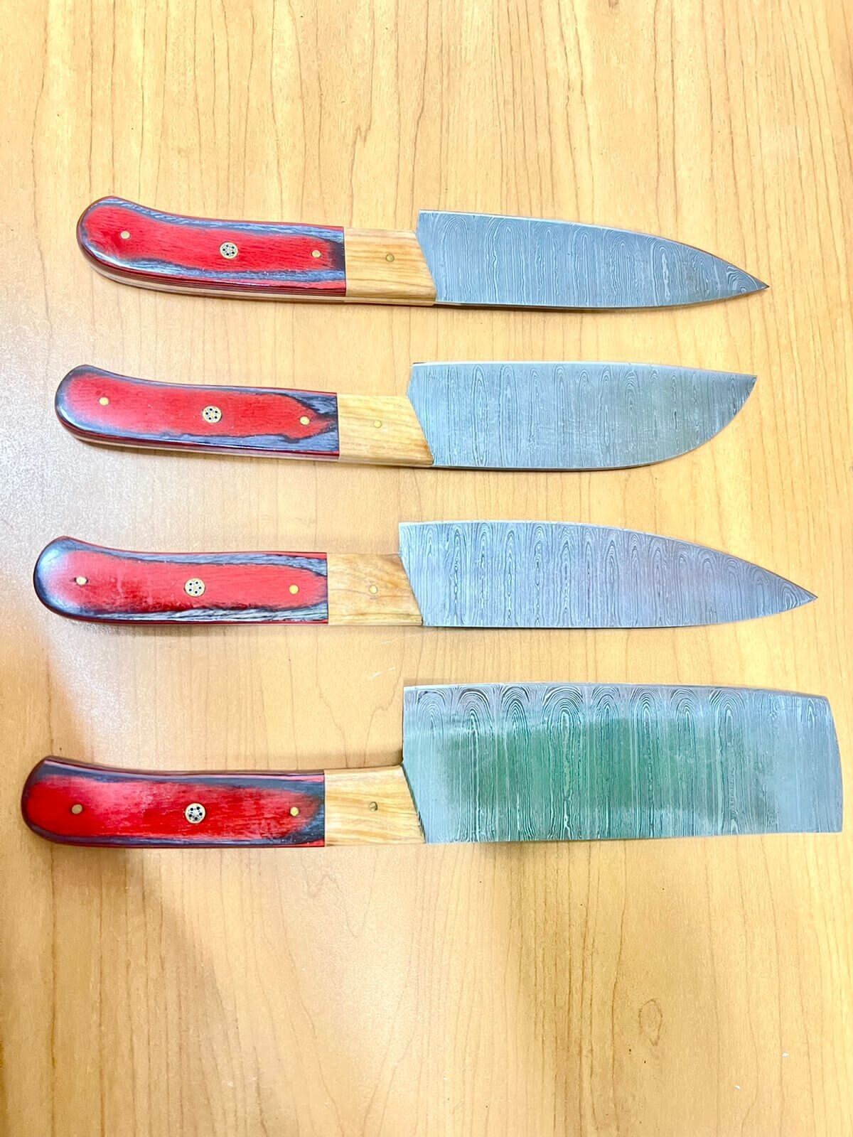 Handmade Damascus Steel Chef Knife Set – 4-Piece Japanese Style Kitchen Knives with Leather Sheath