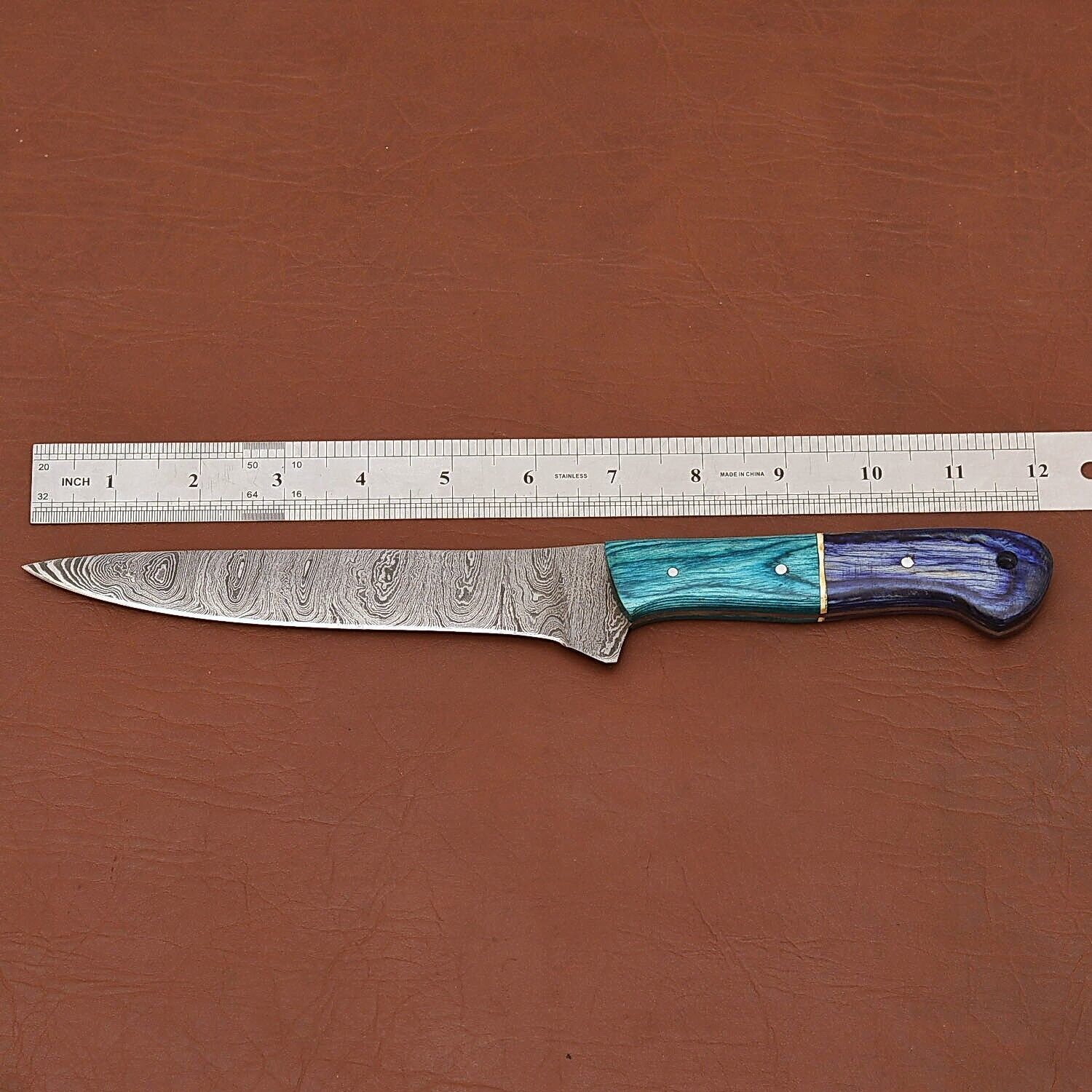 Handmade Damascus Steel Fillet Chef Knife with Ergonomic Pakka Wood Handle