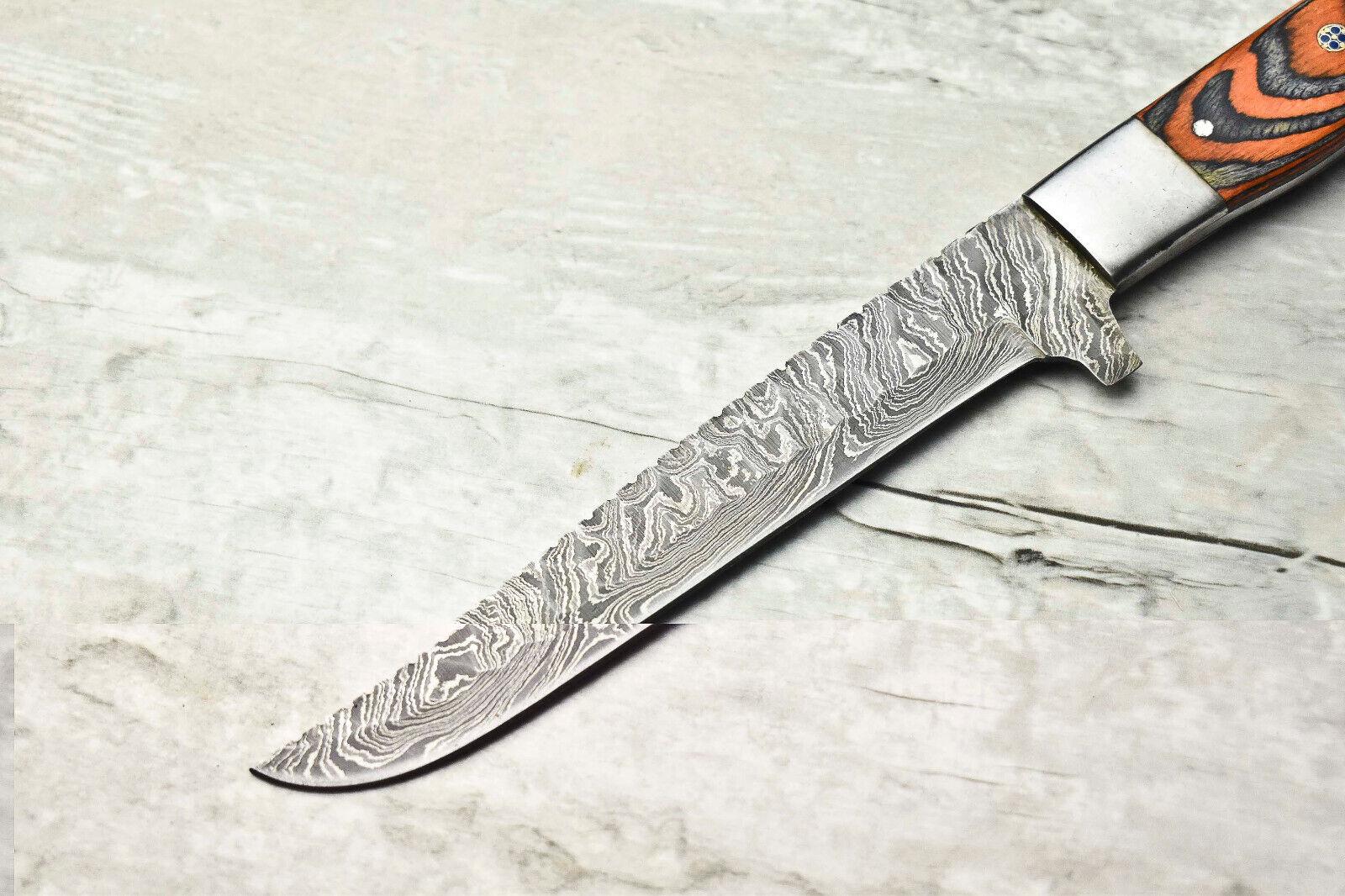 Handmade Damascus Steel Full Tang Chef Knife, crafted with precision for both professional chefs and home cooking enthusiasts. The knife you see in the photos is exactly what you will receive, ensuring authenticity and quality. Our Damascus steel is 100% real, forged from a blend of 1095HC and 15N20 nickel carbon steel, folded over and over to create an impressive 384 layers. This unique forging process, followed by acid treatment, reveals the striking contrast between the nickel’s satin finish and the high carbon’s blackish gray, resulting in the iconic Damascus wave pattern. Unlike simple acid etch imitations, our knives are genuinely forged for durability, sharpness, and beauty. After forging, the handle is high polished to perfection, and the blade edge is carefully sharpened for precision cutting, making it ideal for slicing, dicing, chopping, and professional use. This chef knife is a true work of art — razor sharp, durable, and designed for those who value both performance and craftsmanship in the kitchen.
