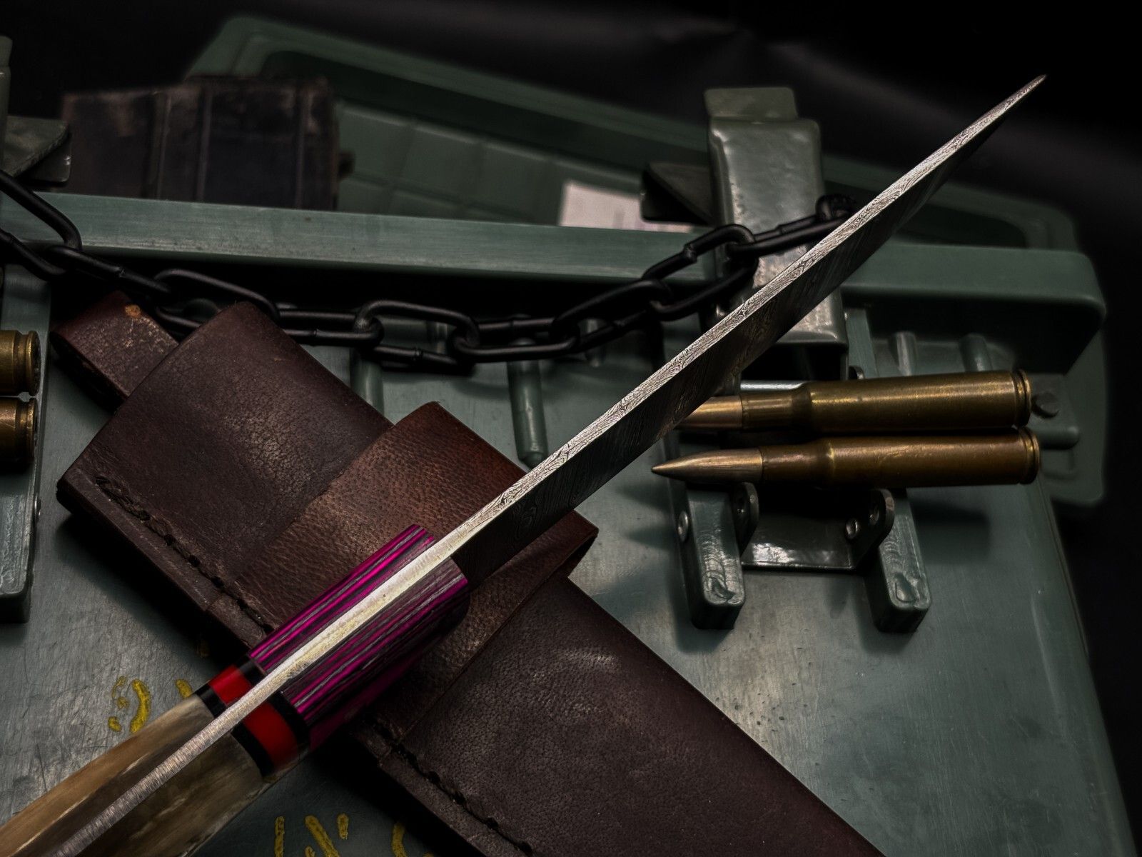 With a blade length of over 5 inches, this knife is perfect for everyday carry, survival, hunting, or culinary use. The included handcrafted leather sheath guarantees safe storage and convenient portability. A unique combination of functionality and artistry, this knife is an ideal addition to any collection.