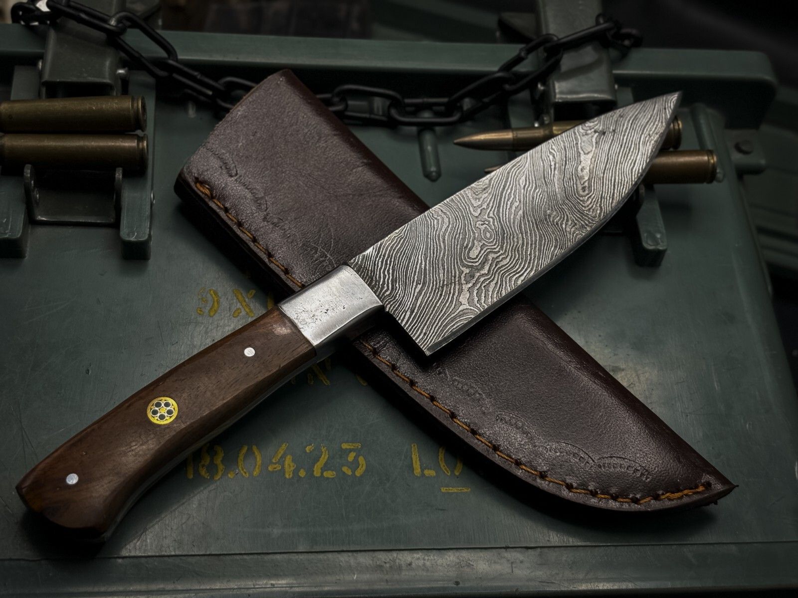With a blade length over 5 inches, it’s perfect for slicing, chopping, and survival tasks alike. Complete with a genuine leather cover, this knife ensures safe storage and easy transport. Handmade with an original design, it’s a reliable tool and a striking addition to any collection.