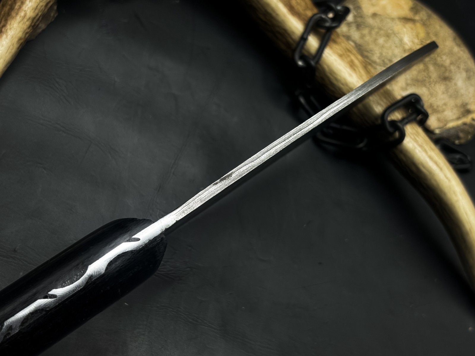 The handle is expertly crafted from high-quality wood, designed to provide a comfortable and secure grip for both left- and right-handed users. This collectible fixed blade knife comes with a genuine cow leather sheath for safe storage and easy portability. Handmade with attention to detail, it’s a must-have for knife collectors, chefs, and outdoor enthusiasts alike.