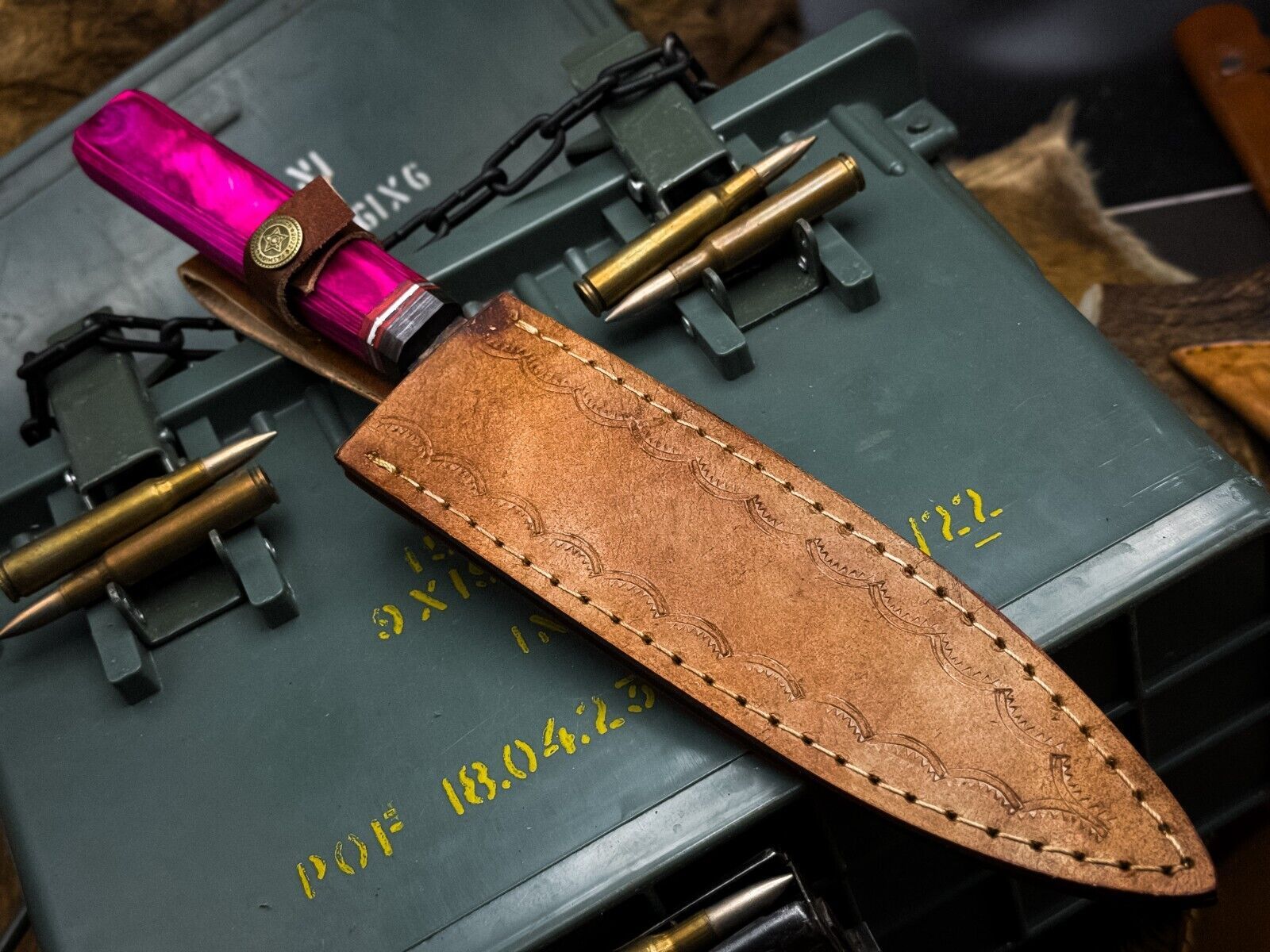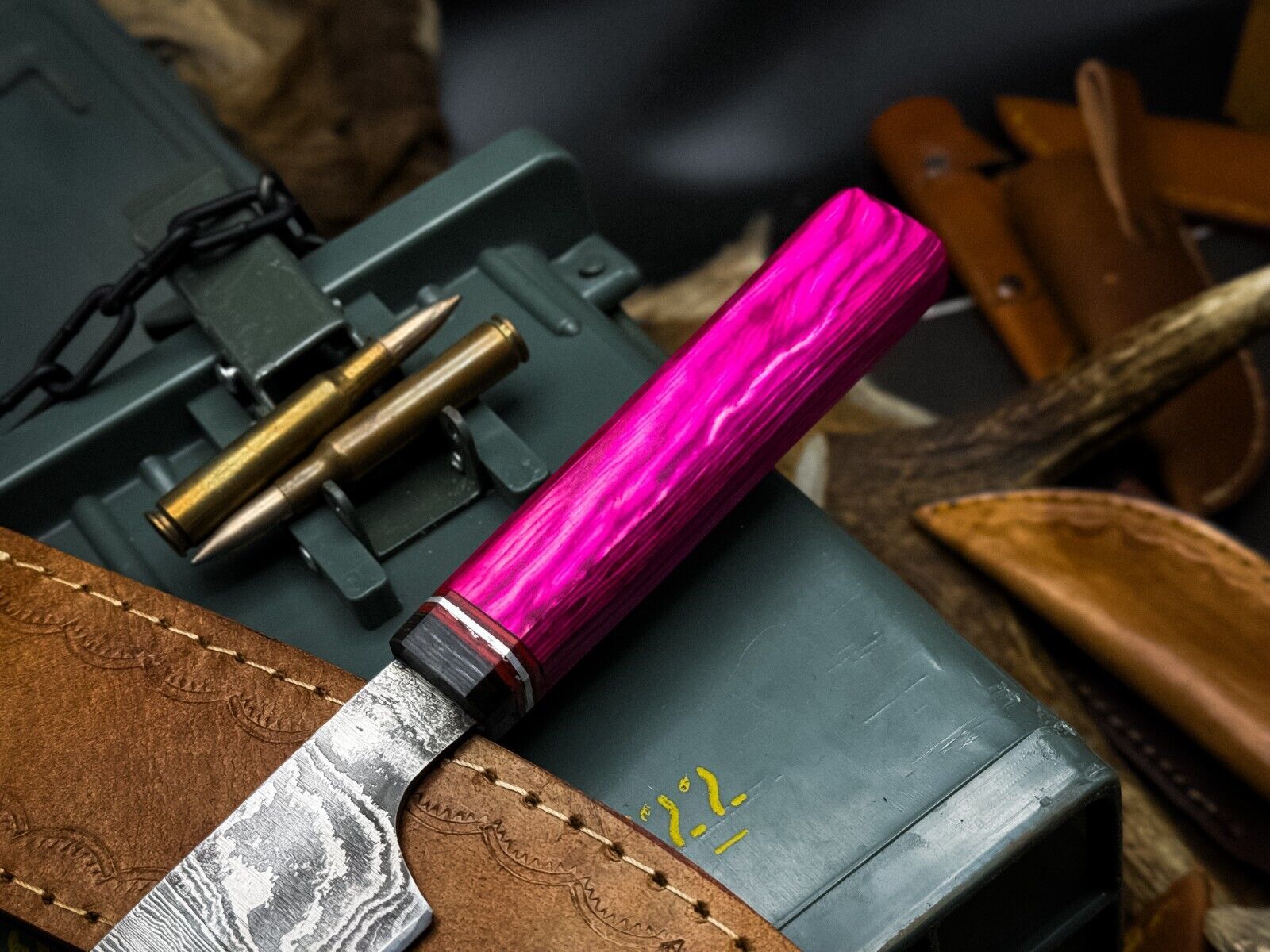 Each knife is handmade, making it a unique piece. Perfect for collectors or everyday kitchen use, this modern fixed-blade knife comes with a premium leather sheath for safe storage and transport.