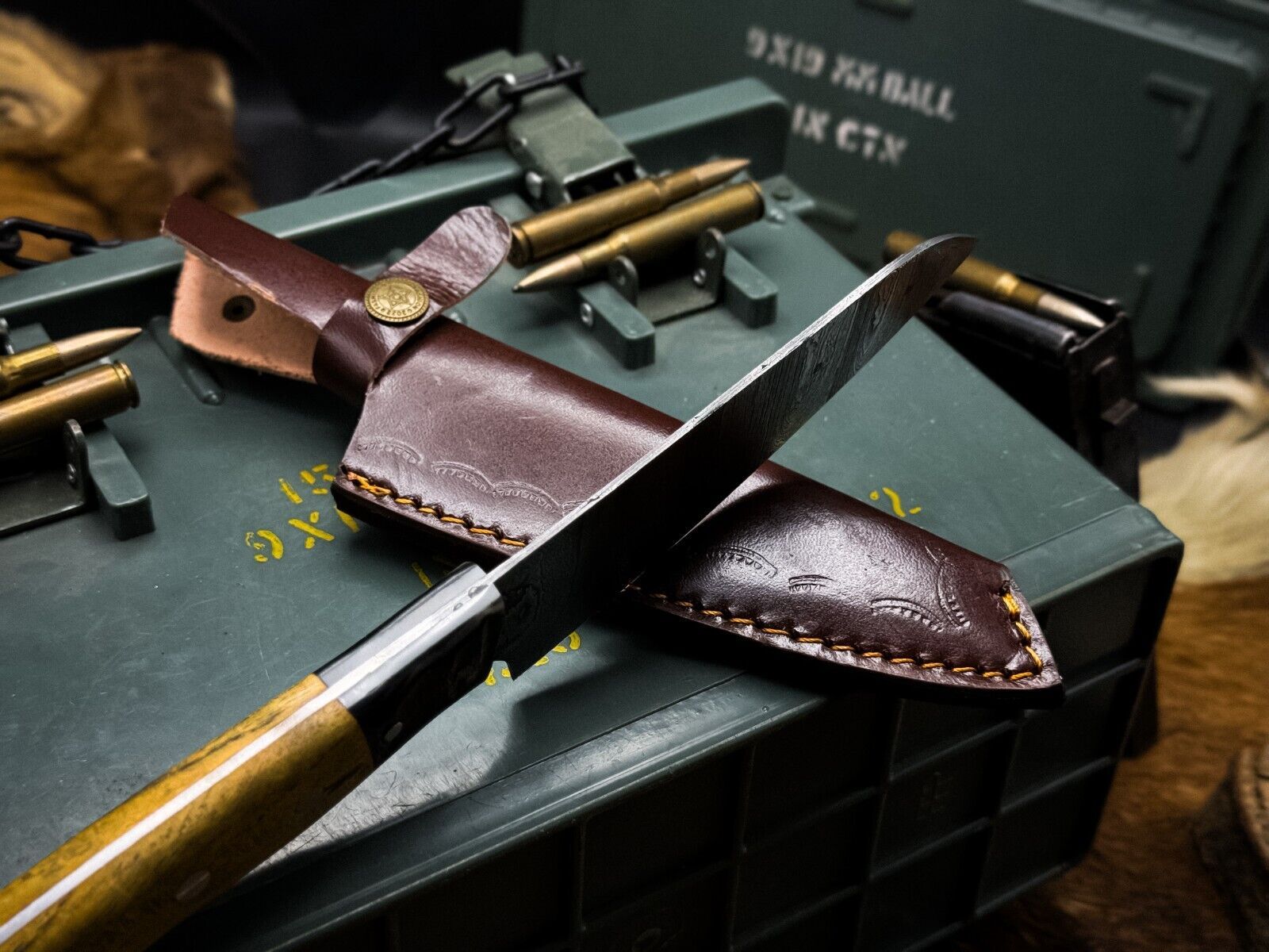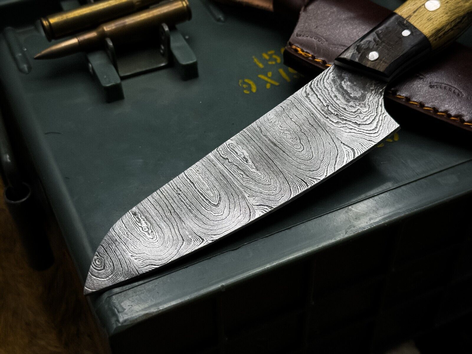 - Each knife has a unique Damascus steel pattern, making it a one-of-a-kind piece