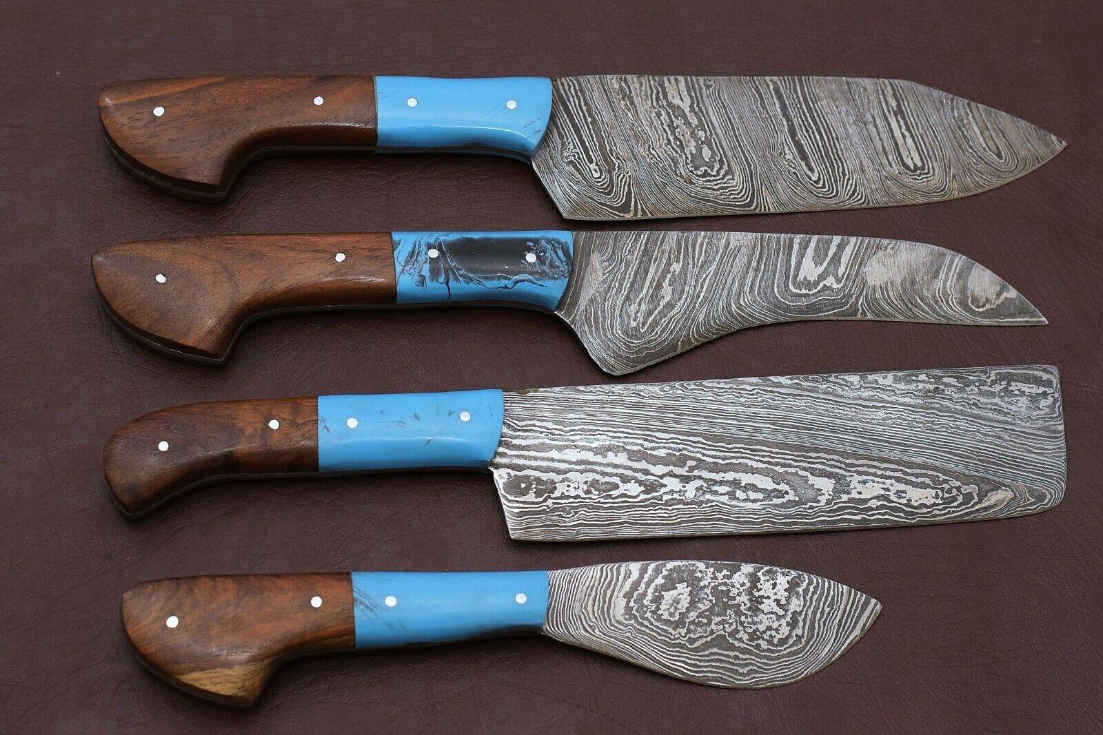 Handmade Damascus Steel Kitchen Chef Knives Set with Rosewood Handle