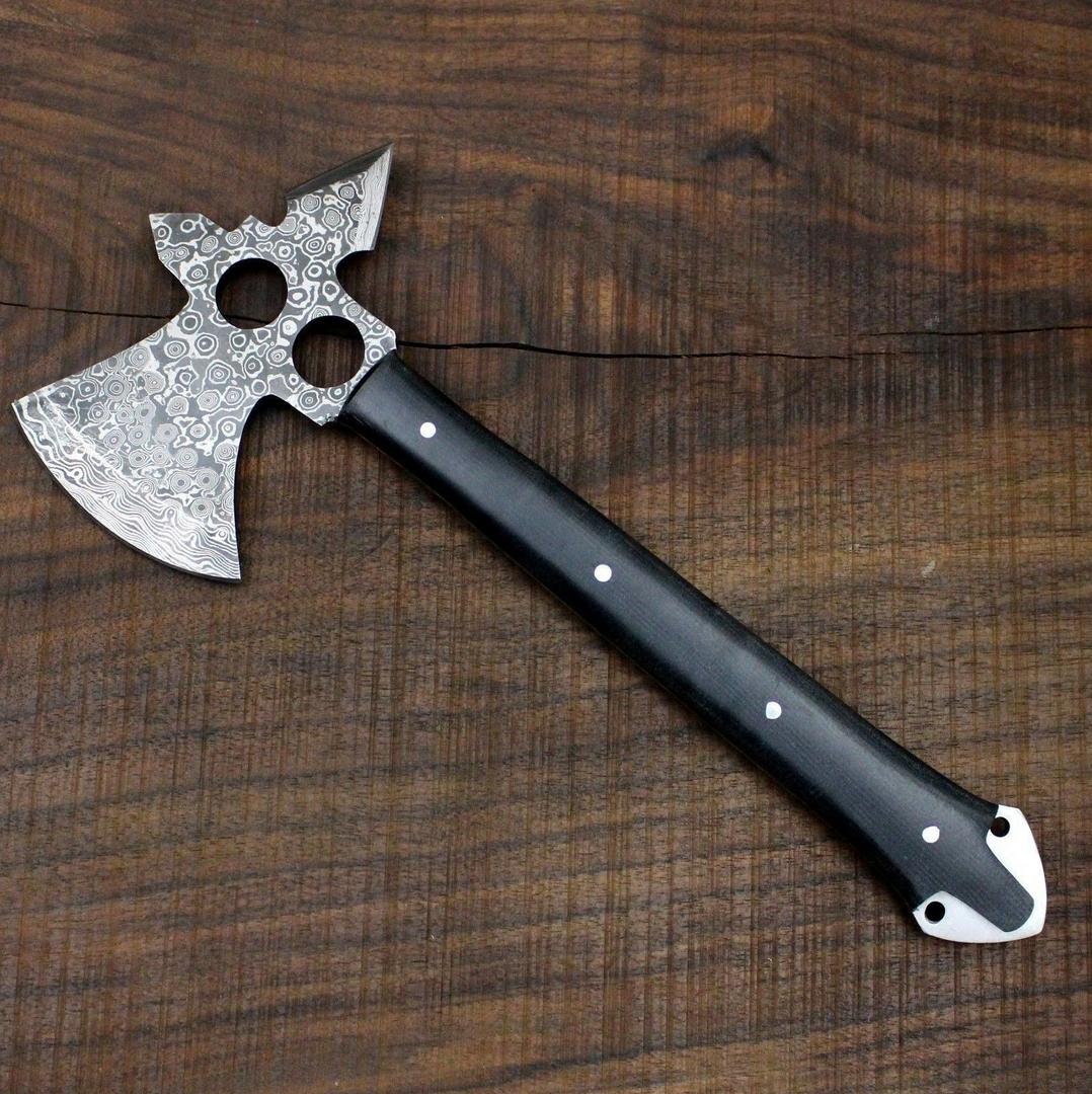 Handmade Damascus Steel Viking Axe with Micarta Wood Handle for Bushcraft and Camping
