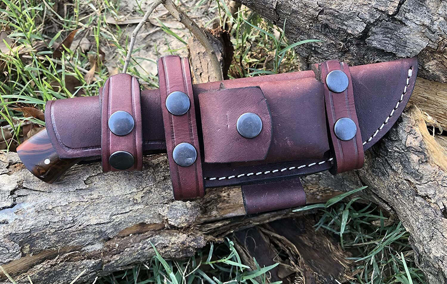 This Handmade Damascus Tracker Knife is a rugged and reliable outdoor tool, designed for both functionality and craftsmanship. With an overall length of 10 inches, it features a 5-inch Damascus steel blade paired with a 5-inch Dollar Sheet Wood handle, creating a perfect balance between durability and comfort.The full tang blade is hand-forged using premium Damascus steel, giving it exceptional sharpness, strength, and a stunning layered pattern. Whether you’re hunting, camping, hiking, or working on bushcraft tasks, this knife is built to perform in all conditions.The knife comes with a handmade cow or buffalo leather sheath, carefully crafted from premium saddle leather. Designed for horizontal scout carry, the sheath allows you to wear it securely on your belt or strap at the base of your back, ensuring quick access and comfortable carry during outdoor adventures.This tracker knife is not only a dependable tool but also a decorative collectible piece for knife enthusiasts and collectors. Functional, durable, and striking in design, it is ideal for survivalists, outdoorsmen, and hunters alike.