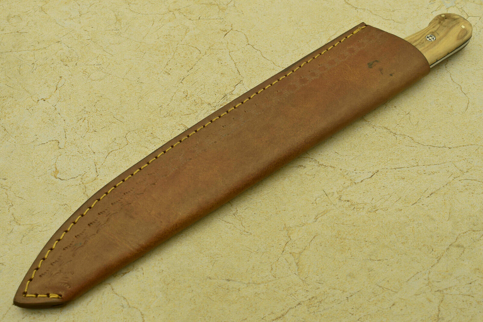 Handmade Forged Damascus Steel Chef Kitchen Knife with Olive Wood Handle – 13.5" Professional Knife