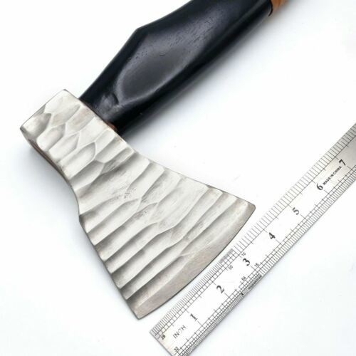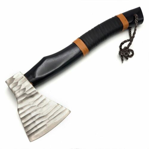 Unleash the power and artistry of Viking craftsmanship with this Handmade Forged High Carbon Steel Viking Throwing Axe. Each axe is carefully profiled, ground, heat-treated, and finished with advanced techniques like etching and bluing to reveal a striking, unique blade pattern. The sharp, tempered edge ensures excellent cutting performance, while the hand-crafted Rosewood handle wrapped in leather provides a secure, comfortable grip.Measuring 18 inches overall with a 5.25-inch blade and a 16-inch handle, this axe is perfectly balanced for throwing, outdoor use, or display. Its hardness rating of 50–55 HRC guarantees durability while maintaining a sharp edge. Each piece is 100% handmade, meaning every axe has unique blade patterns and slight variations in the handle, making it one-of-a-kind.