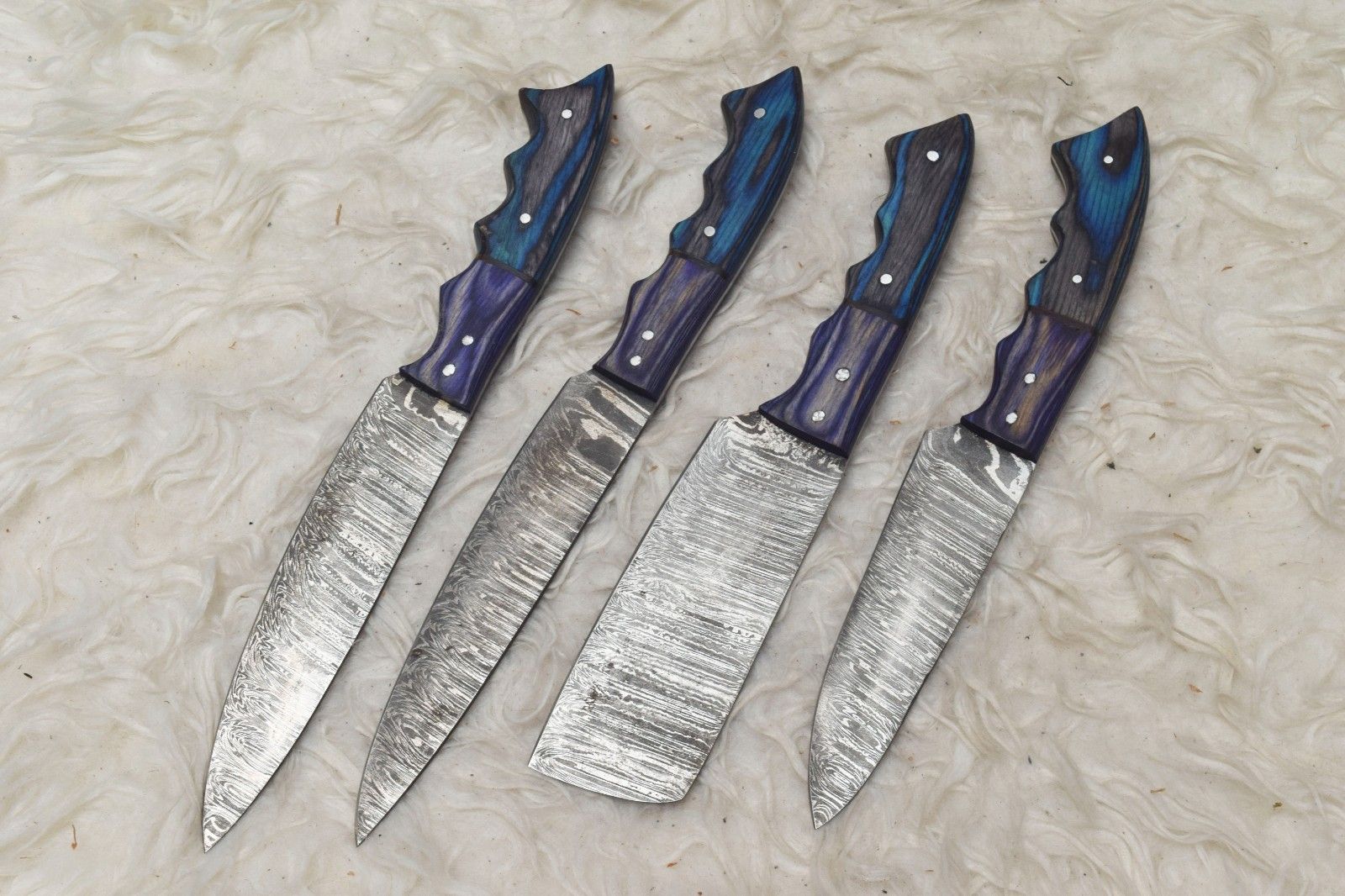This Handmade Hand Forged Damascus Steel Chef Knife Set is crafted for chefs, home cooks, and culinary enthusiasts who value precision, durability, and artistry. Each knife is expertly forged from authentic Damascus steel, creating a unique layered pattern that enhances both strength and aesthetic appeal. The set includes knives with overall lengths ranging from 8 to 11 inches, making it versatile for chopping, slicing, dicing, and general kitchen tasks. Each blade features a full tang design for excellent balance and control, while the handles are carefully polished for a comfortable and secure grip. All knives are 100% handmade, ensuring each piece is unique and of the highest quality. We accept custom and bulk orders to suit your culinary needs. Safety is paramount: these knives are extremely sharp and intended for responsible use only. Perfect for professional kitchens, home use, or collectors seeking high-quality handmade Damascus knives.