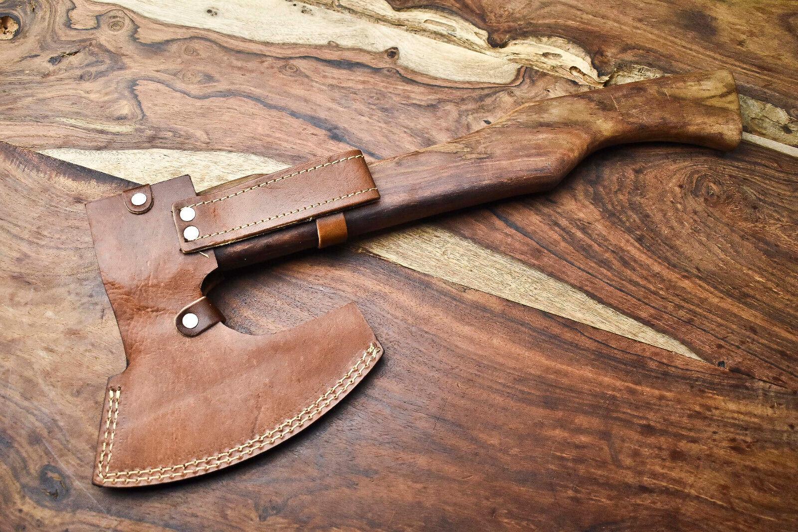 Measuring 18 inches overall with a 5-inch blade length and 6-inch cutting edge, this Viking axe is oil-tempered to 58–60 HRC and sharpened at 20 degrees for superior performance. The hand-polished wooden handle offers both comfort and control, making it suitable for outdoor activities such as hunting, camping, and chopping, as well as for display or reenactment.