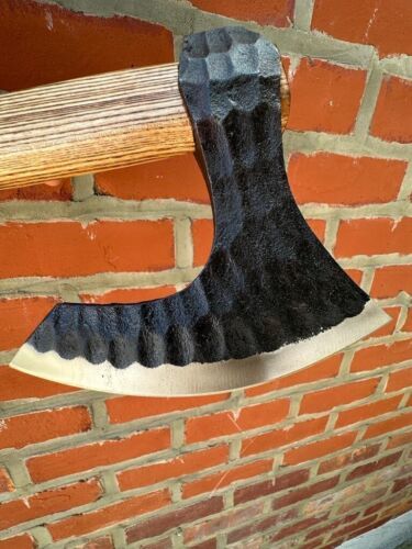 This Handmade High Carbon Steel Viking Hatchet is a versatile and durable axe crafted for hunting, camping, hiking, and bushcraft. Forged from premium carbon steel, the blade is strong, sharp, and designed to perform heavy-duty cutting tasks with ease. With an overall length of approximately 20 inches, a cutting edge of 6 inches, and a head height of 6 inches, this tomahawk-style axe offers excellent balance and power, making it ideal for chopping firewood, clearing brush, or outdoor survival use.