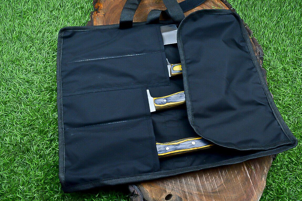 Handmade J2 Steel Chef Knife Set – Professional Kitchen Cutlery with Roll Bag