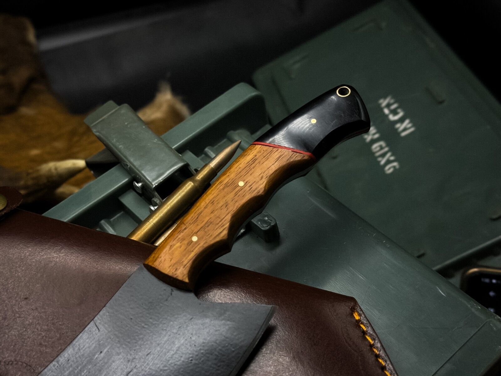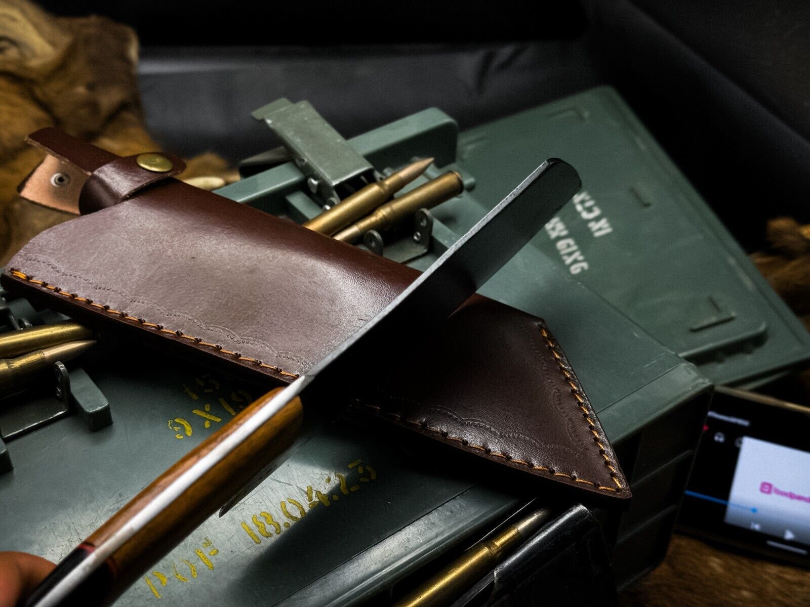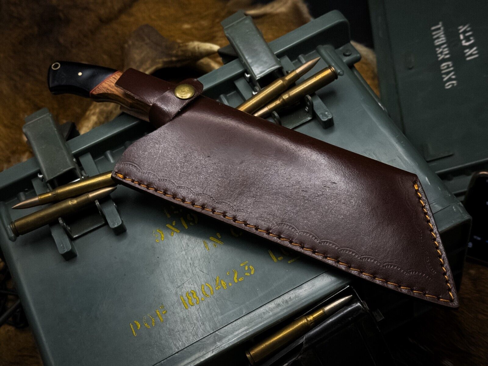 Handmade J2 Steel Cleaver Chef Knife – Powder Coated Blade, Horn Handle, Leather Sheath