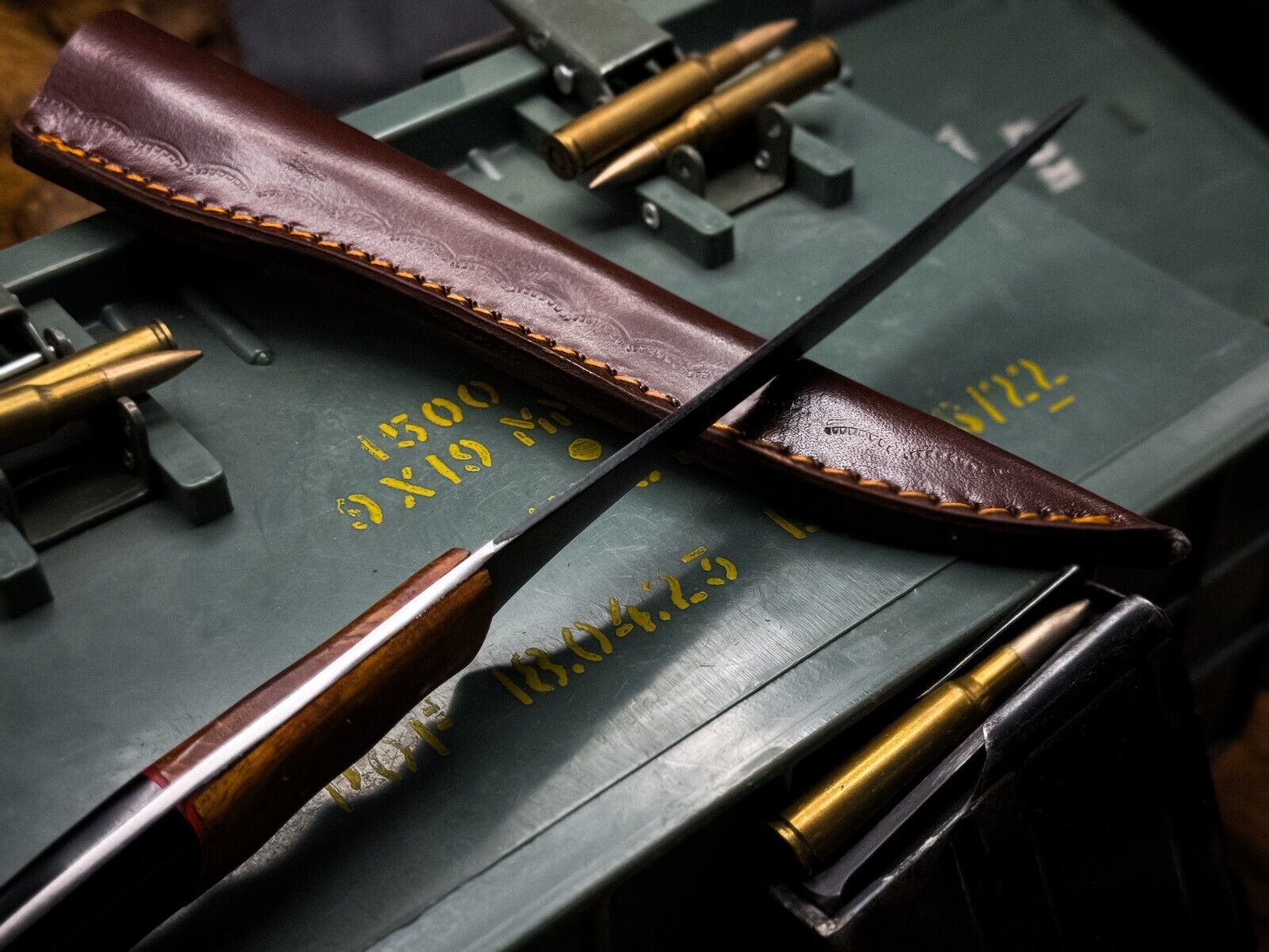 Handmade J2 Steel Hunting & Chef Knife with Powder Coated Blade, Horn Handle & Leather Sheath