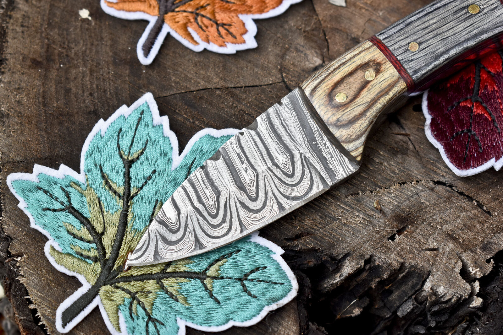 Handmade Twist Damascus Skinner Knife 6 Inch with Hard Wood Handle and Wooden Bolster W/ Leather Sheath