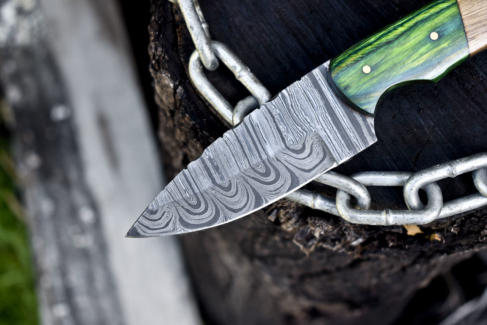 This Handmade Damascus Skinner Knife is expertly crafted for hunters, campers, and outdoor enthusiasts who appreciate both performance and artistry. Forged from a blend of 1095 and 15N20 steel, the damascus acid etched fixed skinner knife features 512 layered folds, forming a captivating twist pattern that flows elegantly across the blade. The acid etching process enhances the swirling black and silver lines, creating a bold yet timeless aesthetic. Measuring 8 inches overall, with a 4-inch razor-sharp blade oil tempered to 58–60 HRC, this damascus knife custom handmade fixed blade hunting knife skinner offers exceptional edge retention and strength for precise skinning and cutting. The handle is crafted from rich olive wood, paired with a wooden bolster, providing a comfortable, secure grip and a touch of natural beauty. Designed for field use, camping, or as a collector’s centerpiece, this damascus skinner hunting knife comes with a hand-tooled leather sheath for safe storage and easy carry. Each handmade skinner damascus knife is individually forged in Pakistan, ensuring no two pieces are alike. Built to last and impress, it’s a functional work of art for any serious outdoorsman or collector.