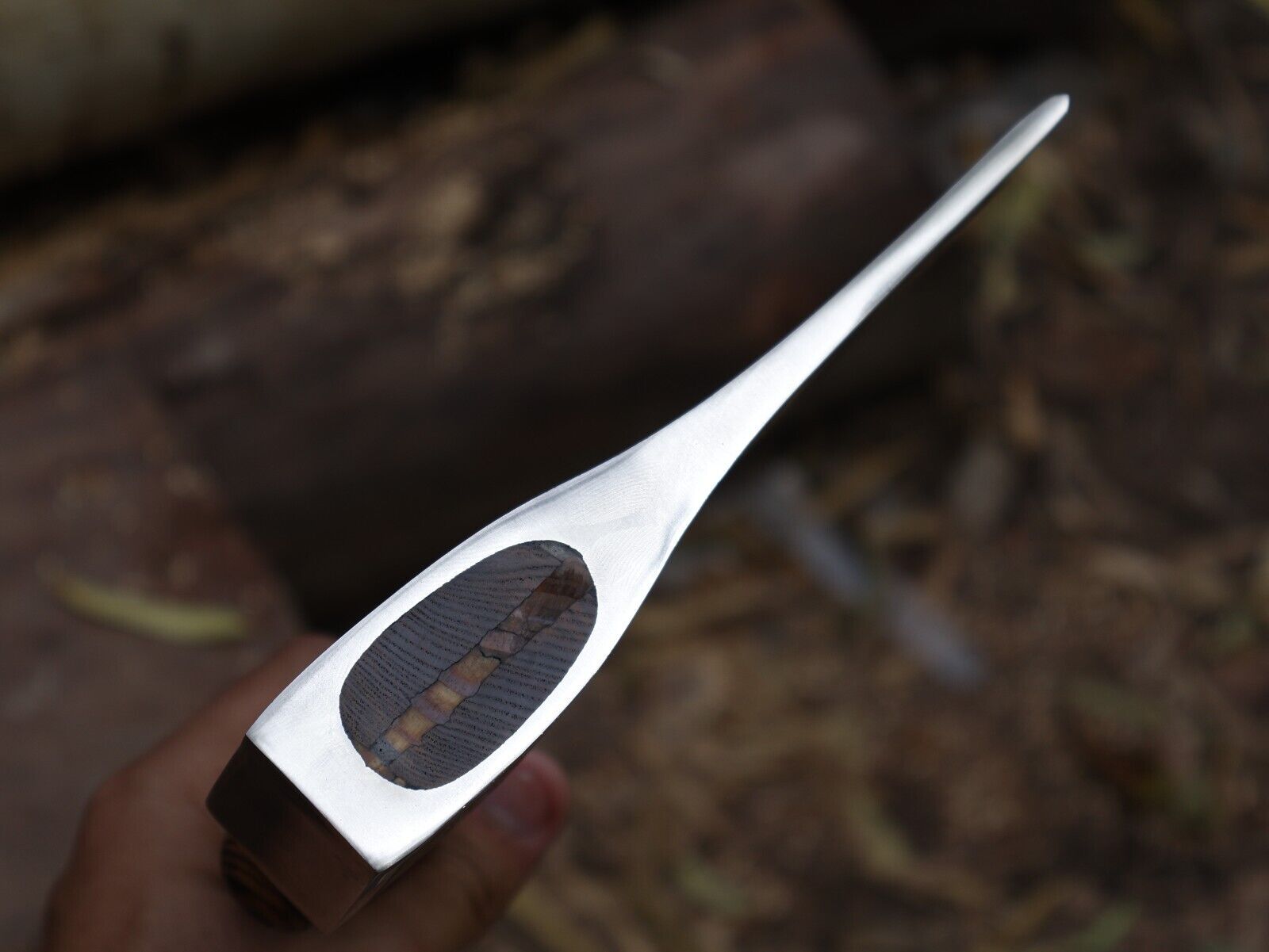 This hand forged Viking axe is crafted with a durable high carbon steel blade and a finely shaped ash wood handle, combining both strength and traditional artistry. With an overall length of approximately 18 inches, the axe features a 6.5-inch wide head and a 4.5-inch sharp cutting edge, making it ideal for chopping, camping, hunting, or display.The blade is forged from over 270 layers of 1095 and 15N20 high carbon tool steels, enhanced with nickel layering for both durability and striking patterning. Heat treated to a Rockwell hardness of 56–57 HRC, this axe offers excellent edge retention, toughness, and long-lasting performance.The ash wood handle is hand engraved for beauty and grip, giving you comfort and control during use. To ensure safety and convenience, the axe comes with a thick, high-quality leather sheath, making it perfect for outdoor carrying or display.